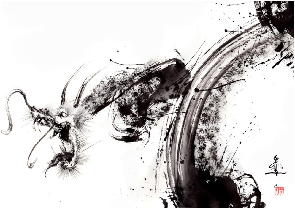 イベントやTV番組では度々「ライブペイント」を披露しており、香港のクリスティーズオークションでは、描いた直後の墨絵が85,000香港ドル (約130万円) で落札されるなど、世界中で見る者を魅了し、圧倒しています。