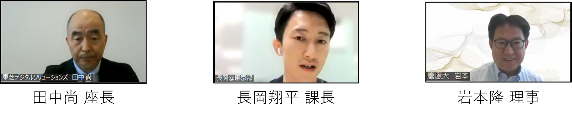 続いて、東京都デジタルサービス局戦略部デジタルシフト推進担当課長(総務部デジタル人材戦略担当課長兼務)の長岡翔平課長より『東京都におけるデジタル人材確保・育成の取組とデジタルスキルマップ』をテーマに講演を賜りました。その後、長岡課長と参加者の皆様の意見交換を当協会理事である慶應義塾大学大学院 政策・メディア研究科 特任教授の岩本隆のファシリテートにより実施、デジタルスキルマップの導入後の運用や人事評価への活用における課題などについて具体的な議論が行われました。