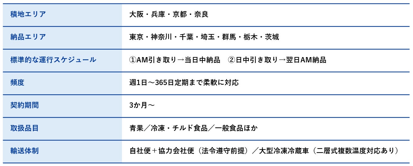 本サービスは、1車単位での定期チャーター運行を前提に、週1日から365日までの幅広い形の運行スケジュールに柔軟に対応しており、運行日数や期間に変動のある荷主企業のニーズにも応じることが可能です。