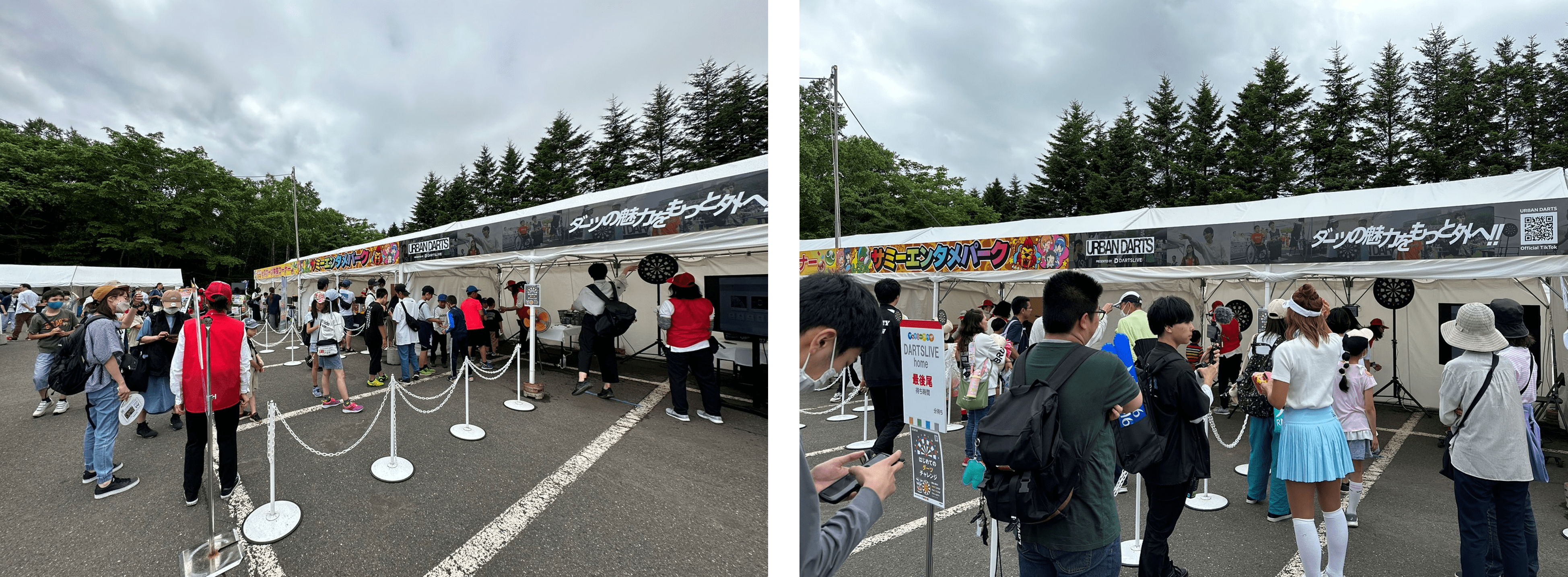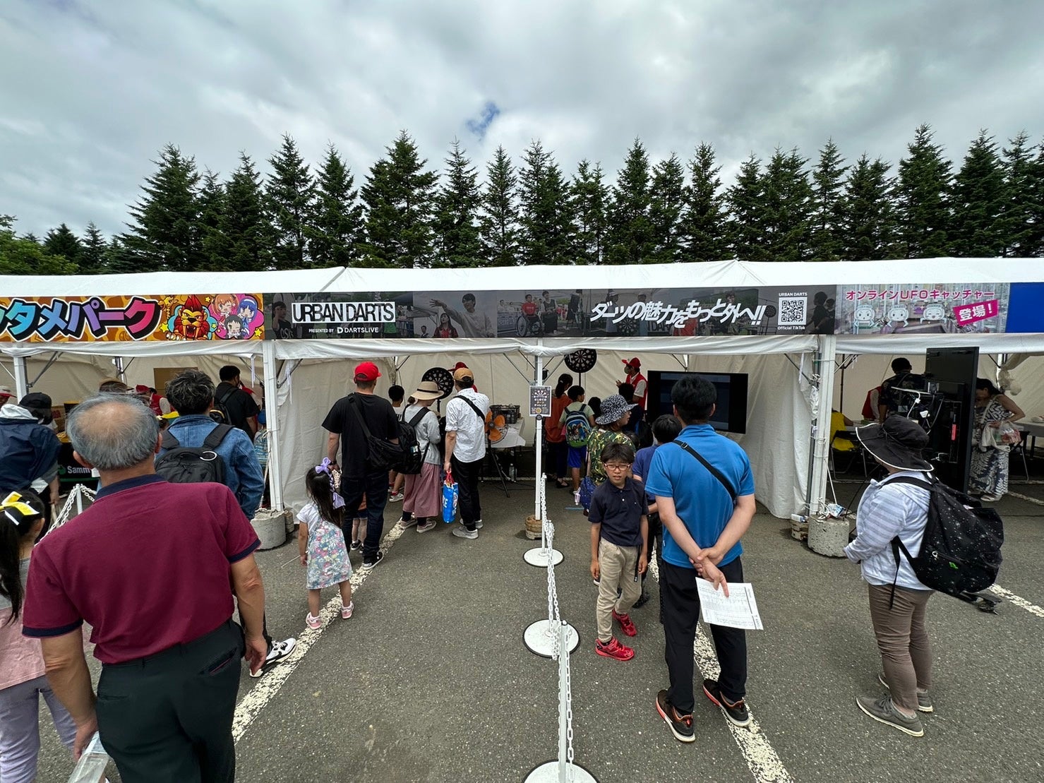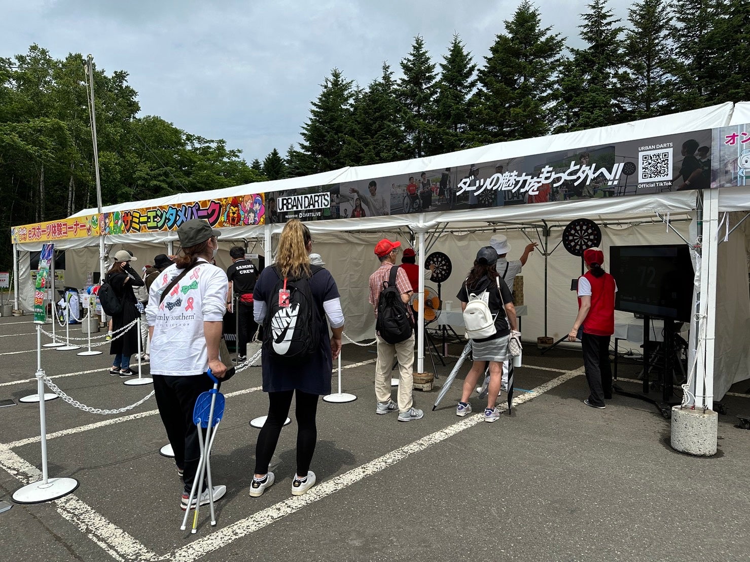 猛暑のような暑さもあれば、ときおり雨が降るなど天候が安定しなかった4日間ですが、土曜日には1000人を超える人がダーツを体験。普段は室内で遊ぶイメージの強いダーツですが、オープンなブースにダーツを見つけると「ダーツがある!」「やってみたい!」と、他のブースで遊んでいた来場者はもちろん、イベントスタッフの方々にもお楽しみいただきました。