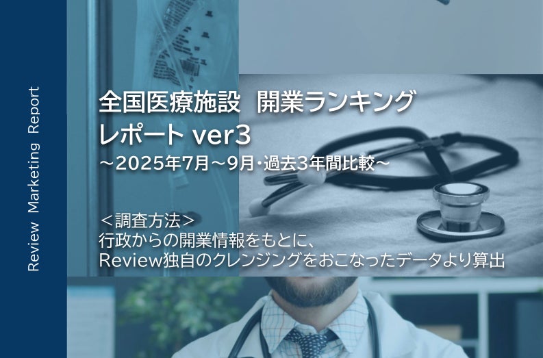 本リリースでは、こうした変化を踏まえ、全国の医療機関開業動向を地域別・時期別・診療科目別に整理した「全国医療施設 開業ランキング レポート ver3(2025年7月〜9月・過去3年間比較)」の分析結果をまとめています。