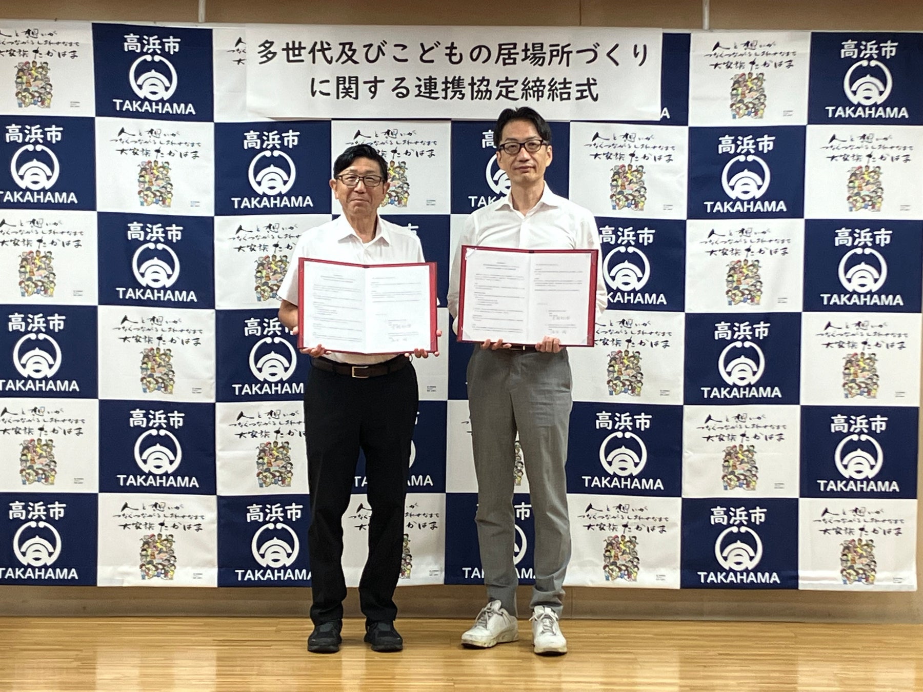 この度、本プロジェクトの取り組みとして、愛知県高浜市(吉岡初浩市長)と地域の居場所づくりを協働して推進することを目的に、「多世代及びこどもの居場所づくりに関する連携協定書」を締結しました。