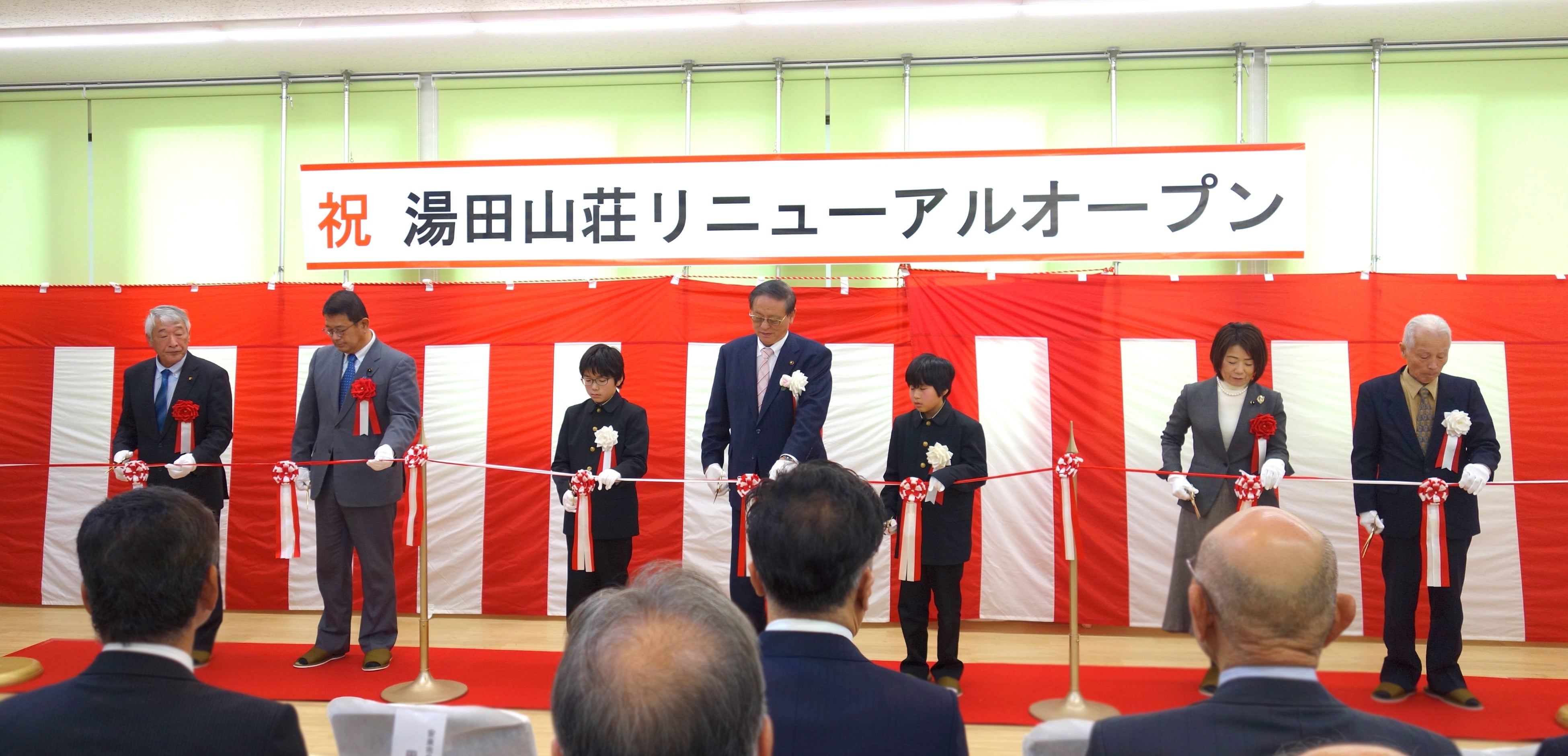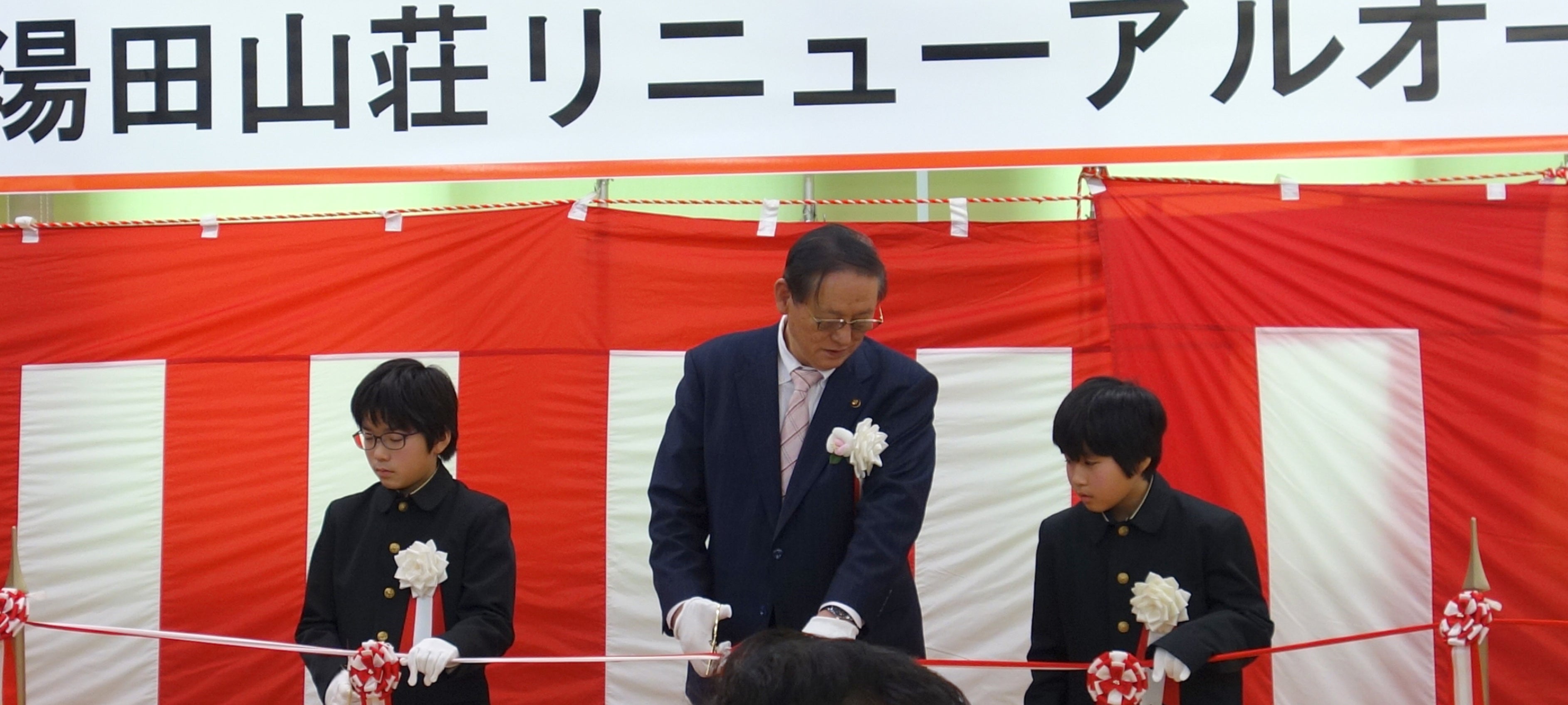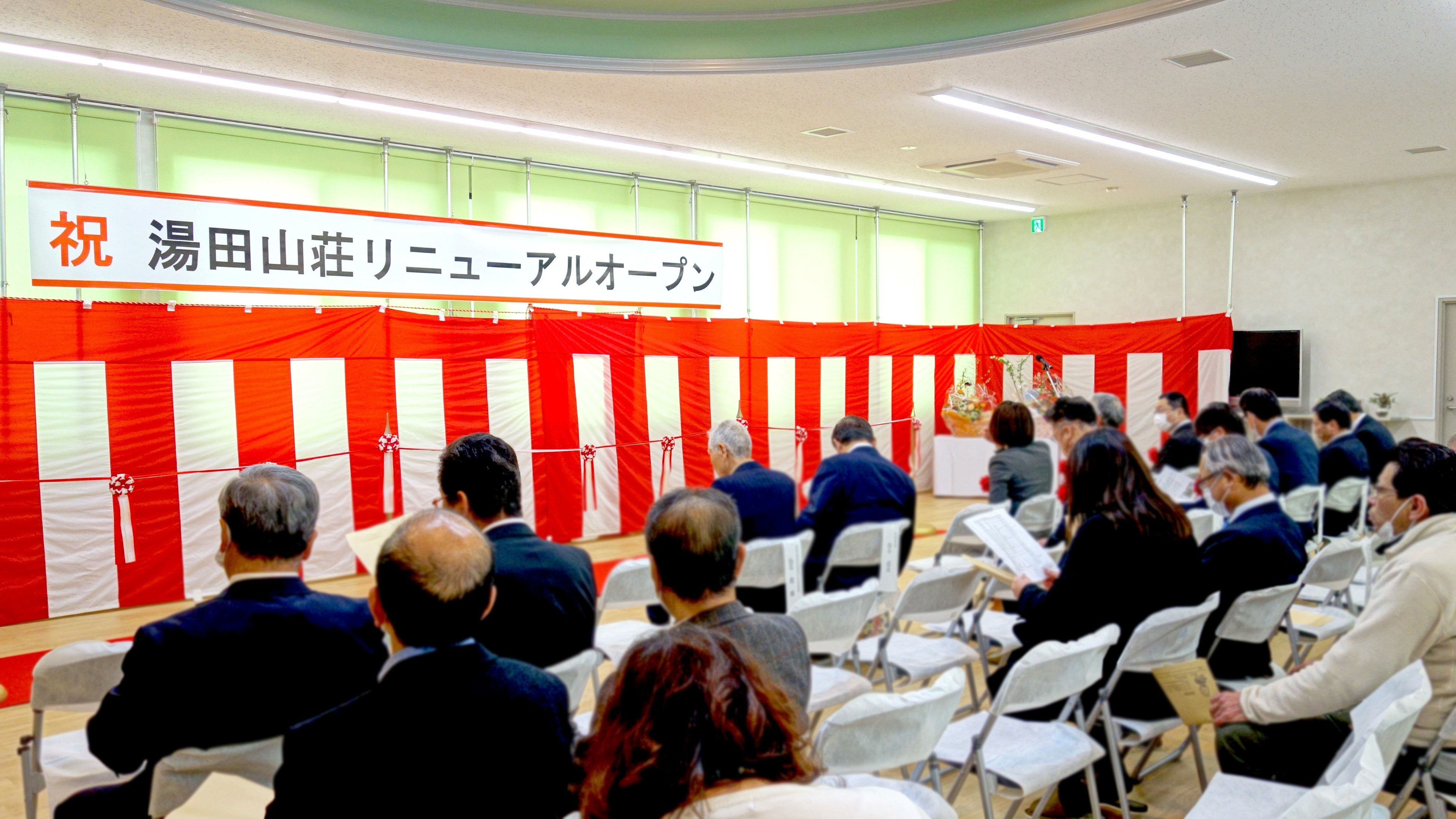 オープニングセレモニーには、田中武夫安来市長を始め、湯田山荘を支援する会のメンバーや島根県議会議員、安来市議会議員、自治会や地域住民の方、リニューアルに携わった企業など多くの方が出席し、今後の湯田山荘への期待感がうかがえました。