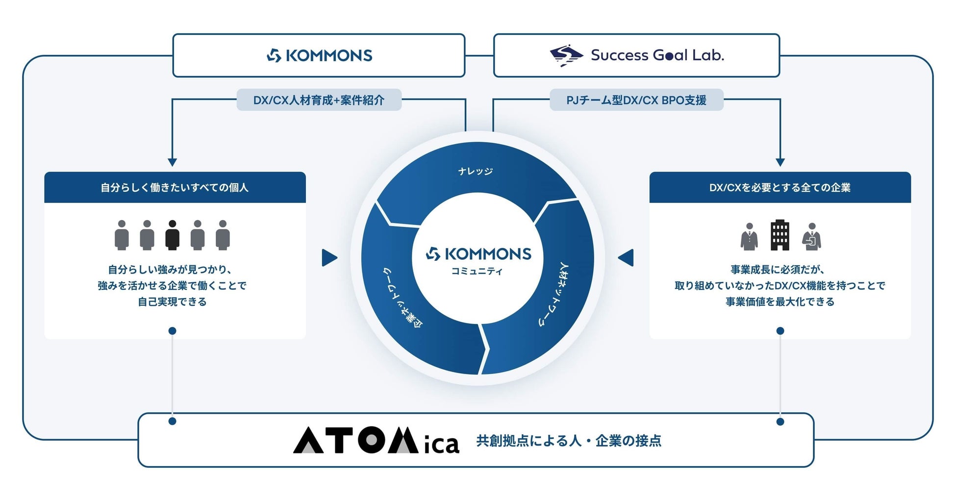 ATOMica、人と企業をつなぐプラットフォーム事業拡大を目指し、KOMMONSとSuccess Goal Lab.を吸収合併