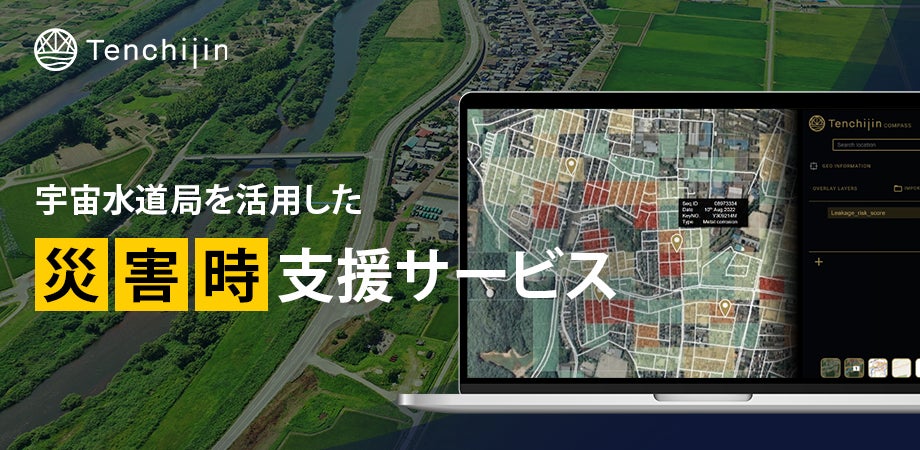 JAXA認定の宇宙ベンチャー 株式会社天地人(東京都中央区 代表取締役 櫻庭康人)は、2023年9月20日(水)から、自治体様の緊急対応を支援するため、要請に応じて迅速に全域の漏水リスク評価を行う「災害時支援サービス」を開始しました。本サービスは、宇宙ビッグデータを活用した水道管の漏水リスク管理業務システム「天地人コンパス 宇宙水道局」を活かし、災害時等の土地の変化をピンポイントで評価可能です。またサービス開始にあたり、平時における防災に関する情報交換などの連携も視野に入れた「有償モニター」を募集しております。10自治体様限定で特別価格でのご提供をいたします(西日本の中核市「特例市」・一般市の自治体様限定)。