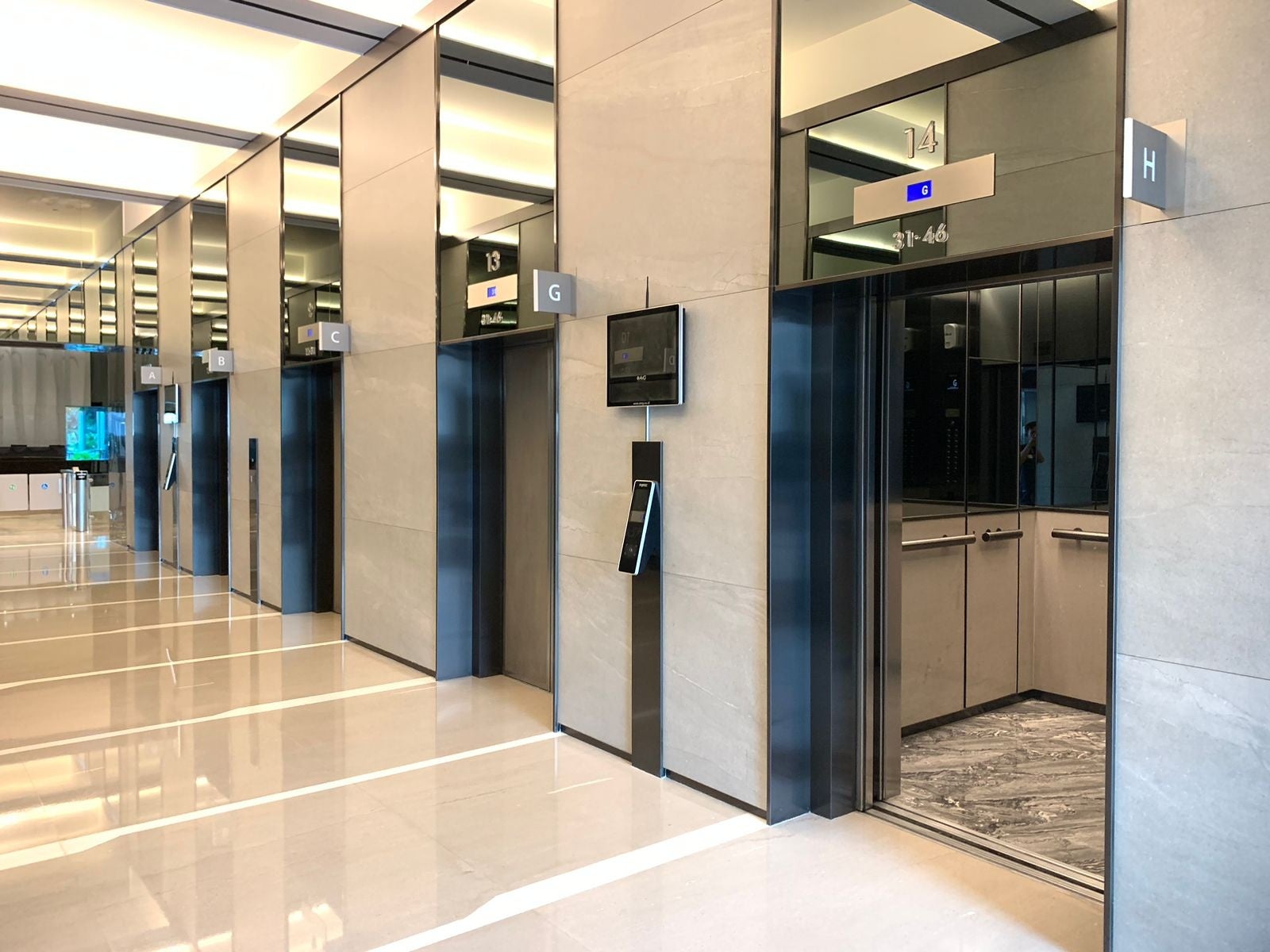 当社は1996年の同ビル竣工時から稼働する当社製エレベータについて、安全性と機能性の向上を目的にリニューアルを実施しました。機能面ではフジテック・インドネシアとして初めて、エレベータ待ちの渋滞を緩和する制御システム「EZ-SHUTTLE(イージーシャトル)」を導入しました。利用者が乗るかごを目的階に応じて自動で割り当てることで、効率的な運行を実現します。