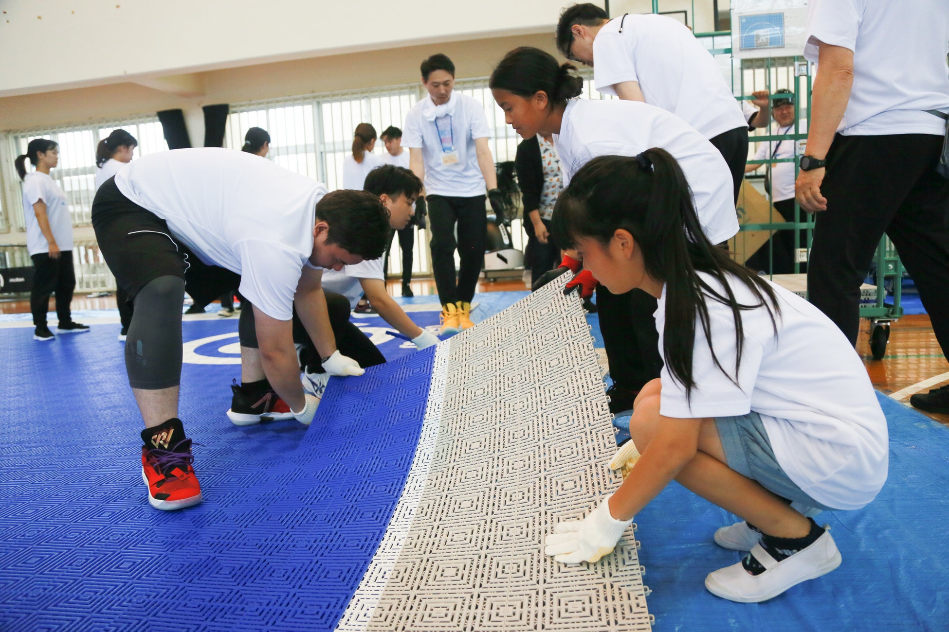 Arch to Hoopの活動では、運動が好きな子・苦手な子など多様な子どもたちがいることを意識し、バスケのプレーだけでなく、コート設営・撤去、イベント運営なども、大人のサポートのもと子ども達自身が行います。