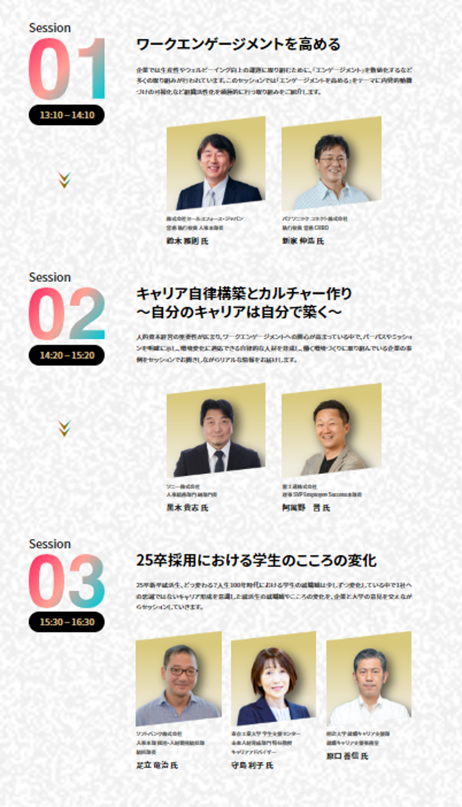 | 参加条件 | 企業の採用・育成業務に従事する部門のご担当者様/大学のキャリアセンターのご担当者様 |