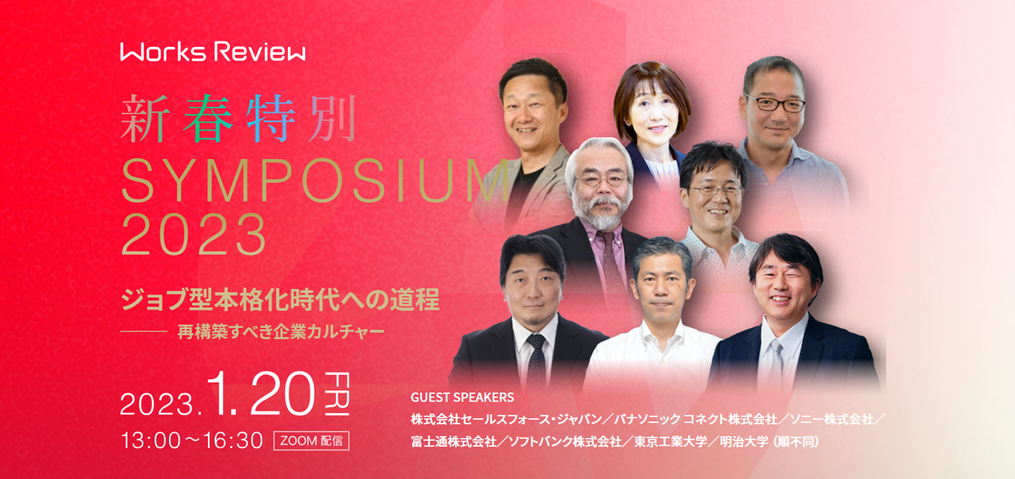 WORKS REVIEW新春特別シンポジウム2023では「ジョブ型本格化時代への道程 〜再構築すべき企業カルチャー〜」をテーマに企業と大学の第一線で活躍されているゲストを迎え、トークセッションを開催いたします。