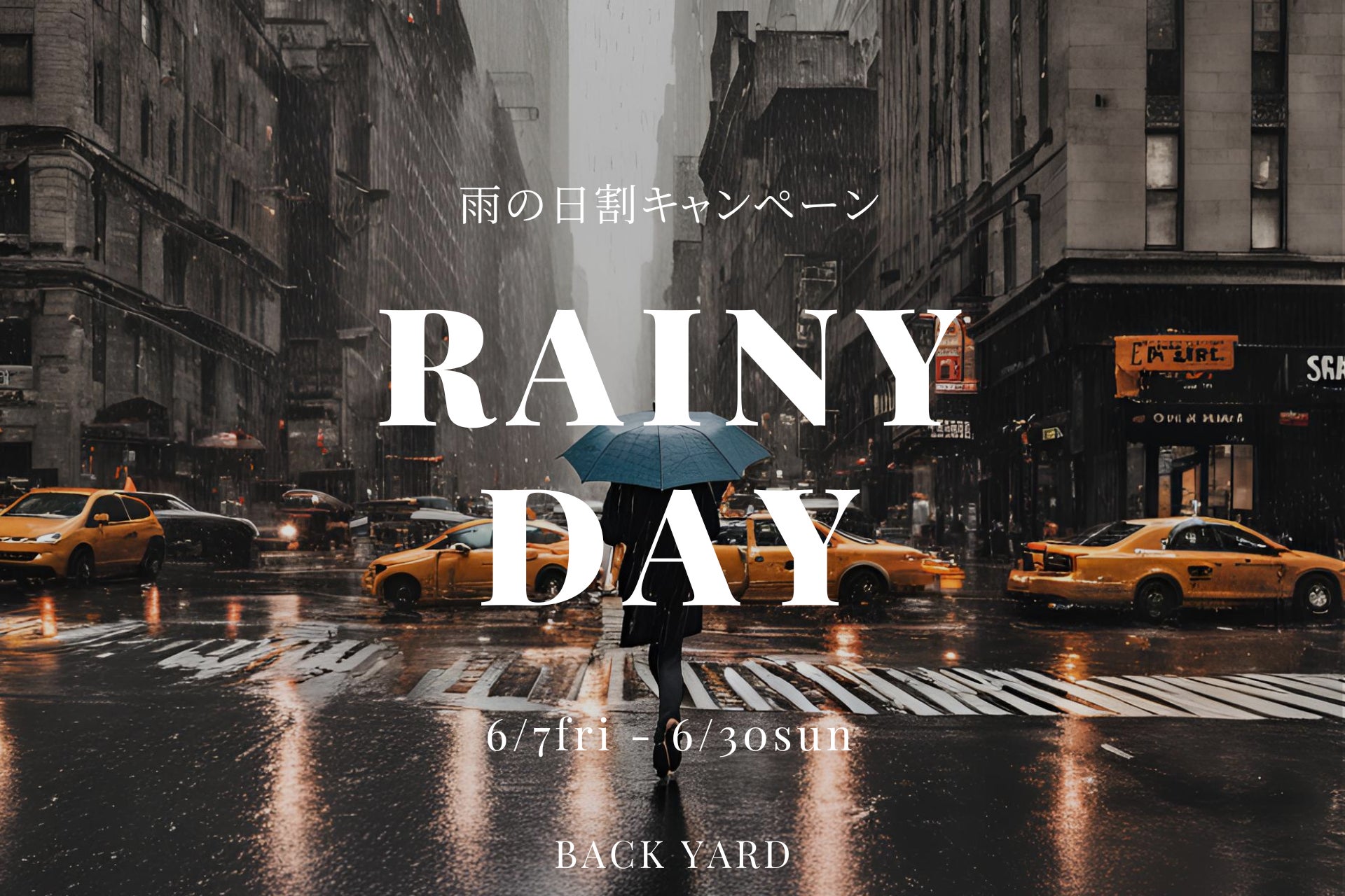 場を仕掛けるクリエイティブカンパニー株式会社BAKERU(本社:東京都港区、代表取締役社長:小林肇)が運営する横浜ビブレ屋上の「BACK YARD -Brooklyn Park Yokohama-」と横浜ワールドポーターズ屋上の「BACK YARD Brooklyn Park Yokohama」は、2024年6月7日から、雨の日割キャンペーンを開始します。本キャンペーンでは6月7日〜6月30日の期間中ネット予約で先払いがお済みの方全てを対象に、当日の支払い金額×降水確率分の金額を次回ご来店の際にお値引きいたします(※30%以上の降水確率より適用)。