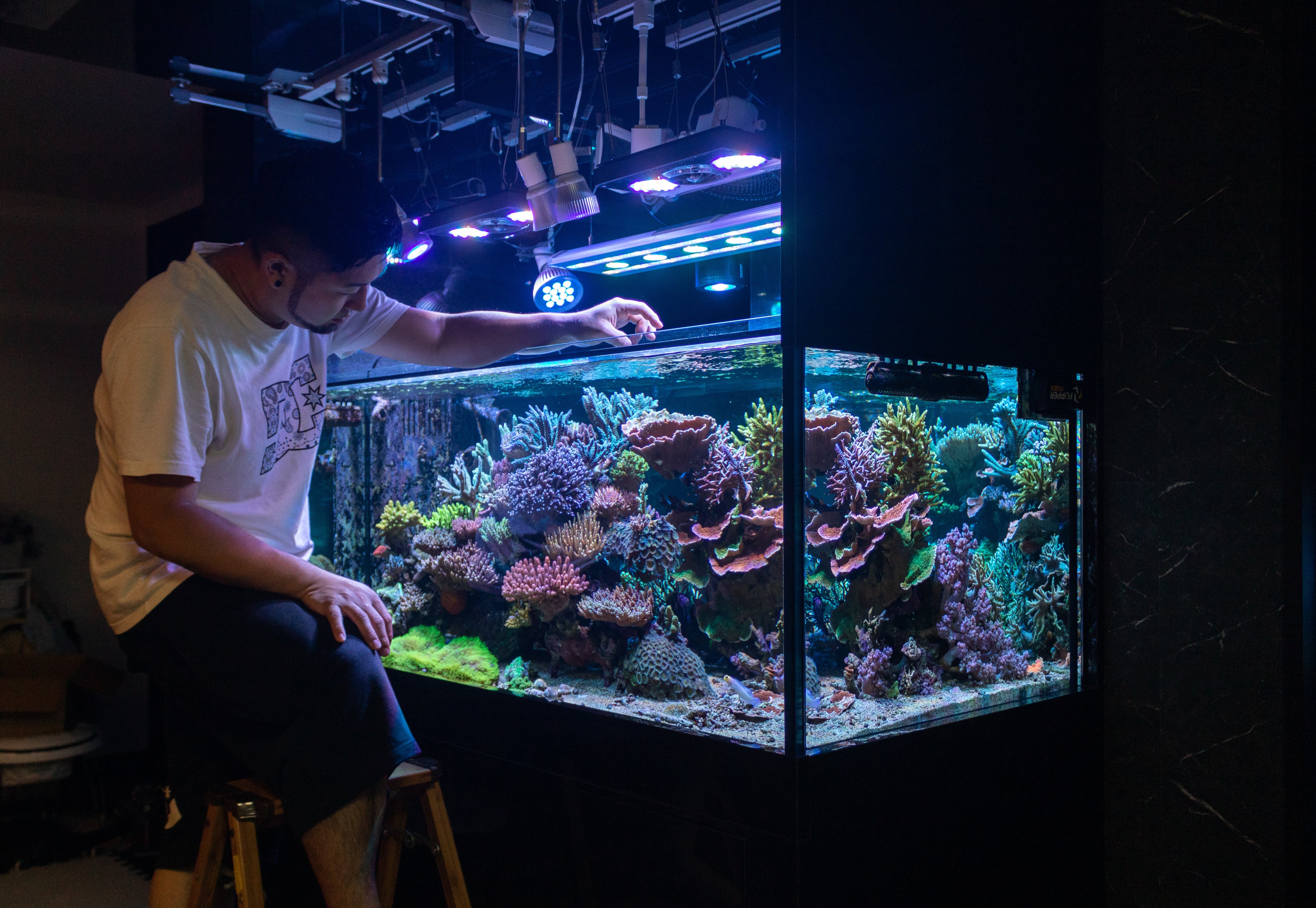 「環境移送技術®︎」とは、海をはじめとした水域の自然環境を、水槽を用いて陸地で再現する独自の技術コンセプトです。自社開発したAI / IoTデバイスを用いて、水質・水温・水流・照明環境・微生物を含む生物同士の関係性など、自然を構成する要素を構造化し、実際の環境に近い状況を作り出します。これにより、実験や解析に適した「標準的」かつ「安定・均一」な環境を、立地を選ばず構築することが可能となりました。2022年2月には、時期をコントロールしたサンゴの人工産卵に成功しています。