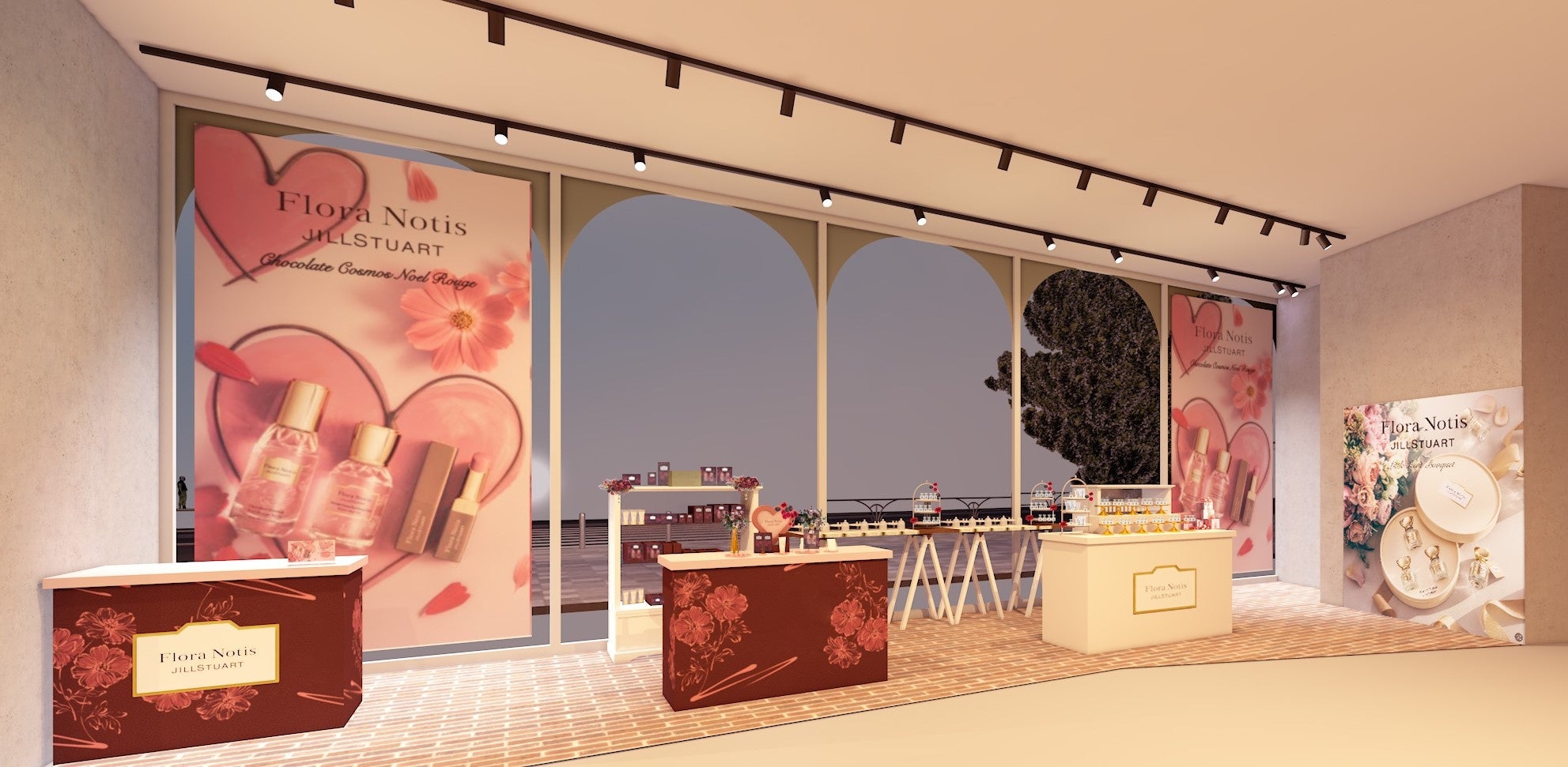 『Rouge Bouquet Valentine』をコンセプトに、赤い花びらに一瞬で引き込まれる「チョコレートコスモス ノエルルージュ」の世界観が詰まったPOPUP会場で、バレンタイン限定コレクションの香りや商品をお試しいただけるほか、特別なご購入特典多数ご用意しております。