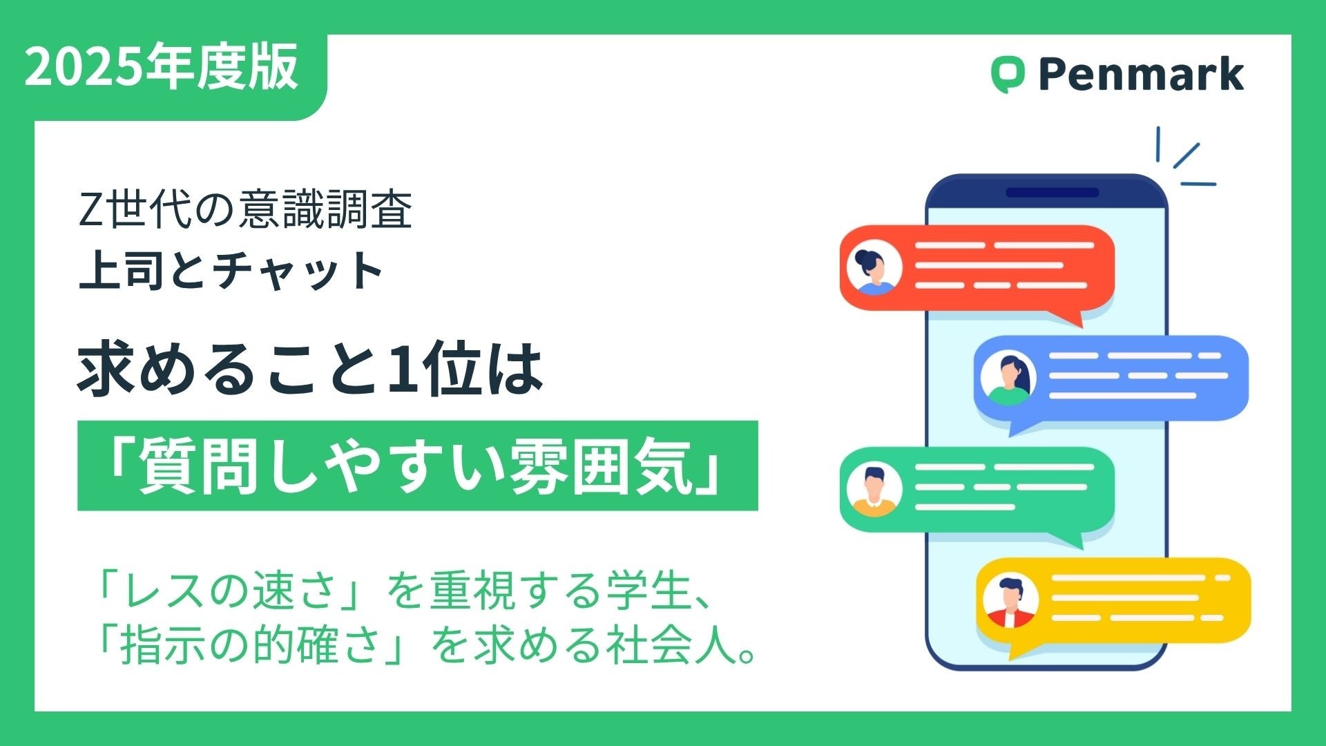 株式会社ペンマーク(本社:東京都目黒区、代表取締役:横山直明、以下ペンマーク)は、全国のZ世代を対象に、Z世代の就業意識調査の一環として「上司・指導者とのチャットコミュニケーションで期待すること」に関するアンケート調査を学生・社会人別に実施し、比較分析を行いました。