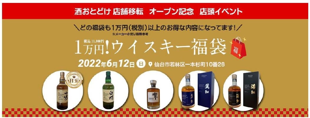 山崎12年や響ジャパニーズハーモニーが当たるチャンス!綿半酒類「酒おとどけ」移転オープニングイベント開催!限定100 個高級ウイスキー福袋販売!