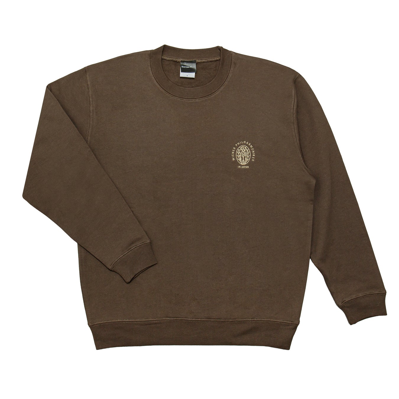 ウィーン・フィルのロゴを左胸にワンポイントの刺繍で施したオリジナル長袖トレーナー。チャコールグレーを基調としたシンプルで上品なデザインです。