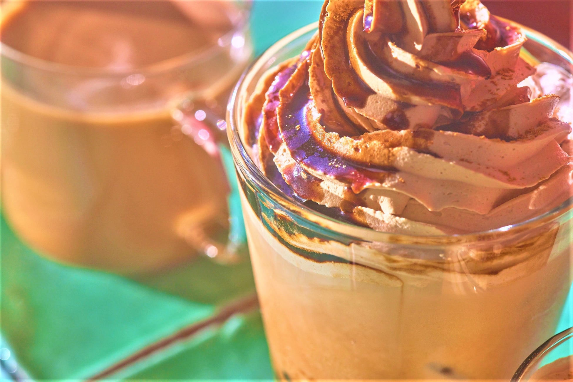 ウーロンティーのコクに負けないしっかりとした甘さの黒糖ミルク、香り高く力強い味わいの深煎り焙煎きなこ、たっぷり盛られた「きなこホイップ」に仕上げの黒糖シロップ。
