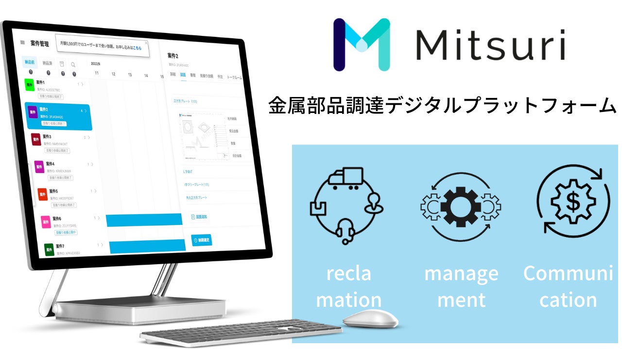 Mitsuriは金属加工におけるサプライチェーンの各工程をデジタル化し、特注金属加工品の最適な調達を実現するサービスです。2018年のリリースより、累計約8000社からの案件依頼を抱えるプラットフォームへと成長しています。