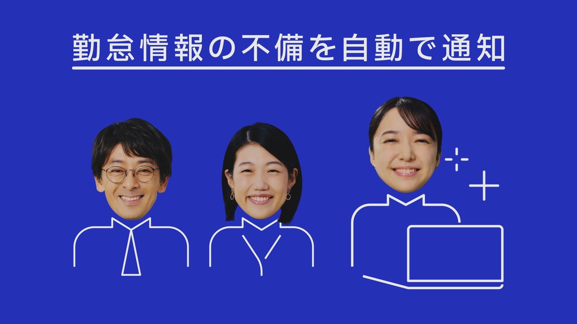 勤務の締め作業に追われている上白石さんに横澤さんが声をかけます。すると、勤怠管理の3大あるある「打刻漏れ」「申請不備」「対応遅れ」を象徴する3人の社員が現れます。