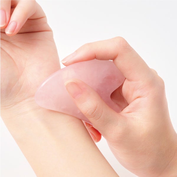 手や身体に沿って、カーブ面を当てながらやさしく撫でるようにすべらせます。