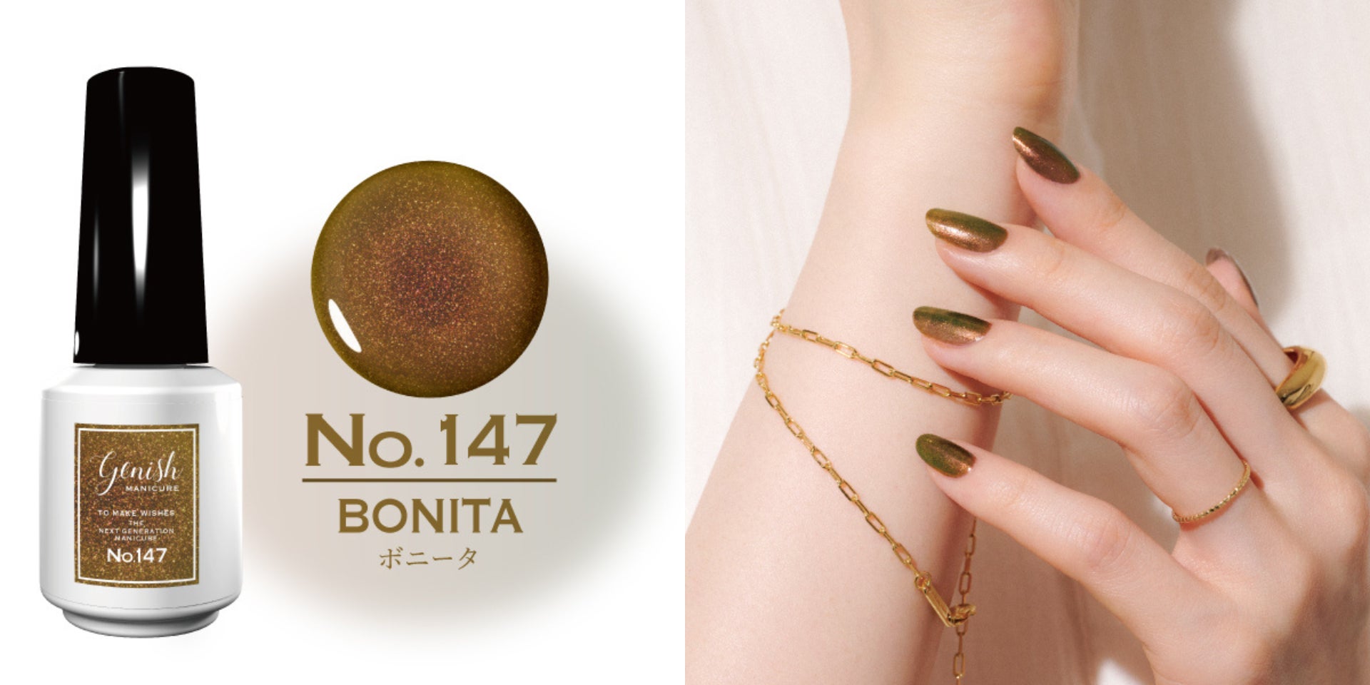 「もっと手軽にセルフネイルを楽しみたい」「キレイな仕上がりを持続させたい」、そんなマニキュア派のwishに応える、新世代マニキュアブランドです。また、マニキュアでありながらジェルのツヤ感や持ちの良さを実現する、ライト硬化不要のジェル風マニキュアとして、いいとこ取りの本商品。UV/LEDライト不要、除光液で簡単オフ、パラベン・トルエンフリーの爪への優しさを実現しています。