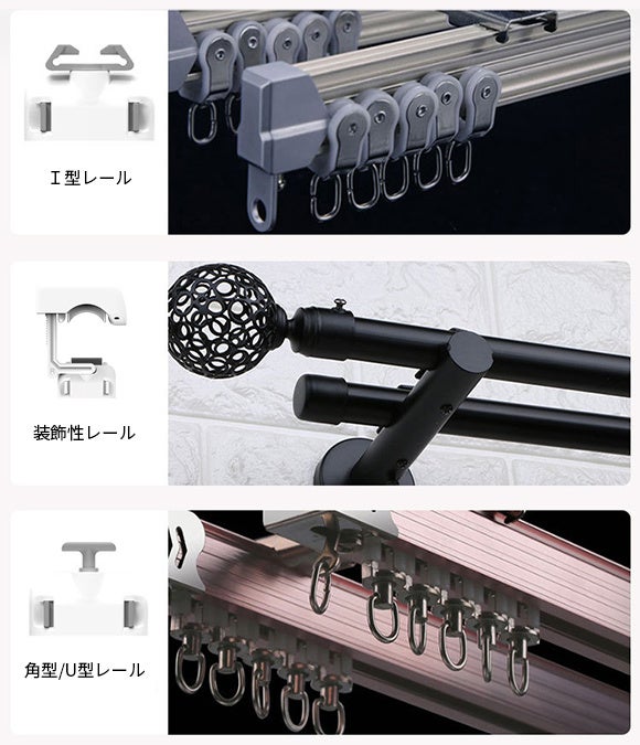 4. I型・角型・装飾性レールに対応し、ダブルタイプのカーテンレールにも!
