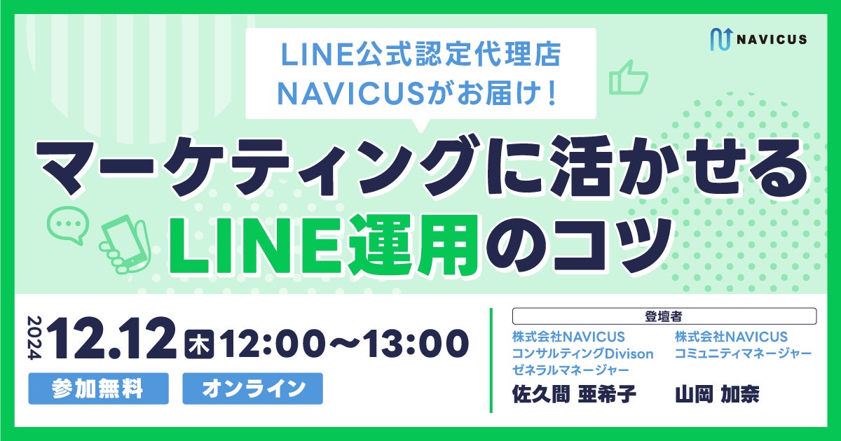 【12/12開催!】無料ウェビナー「LINE公式アカウント認定代理店のNAVICUSがお届け!マーケティングに活かせるLINE運用のコツ」