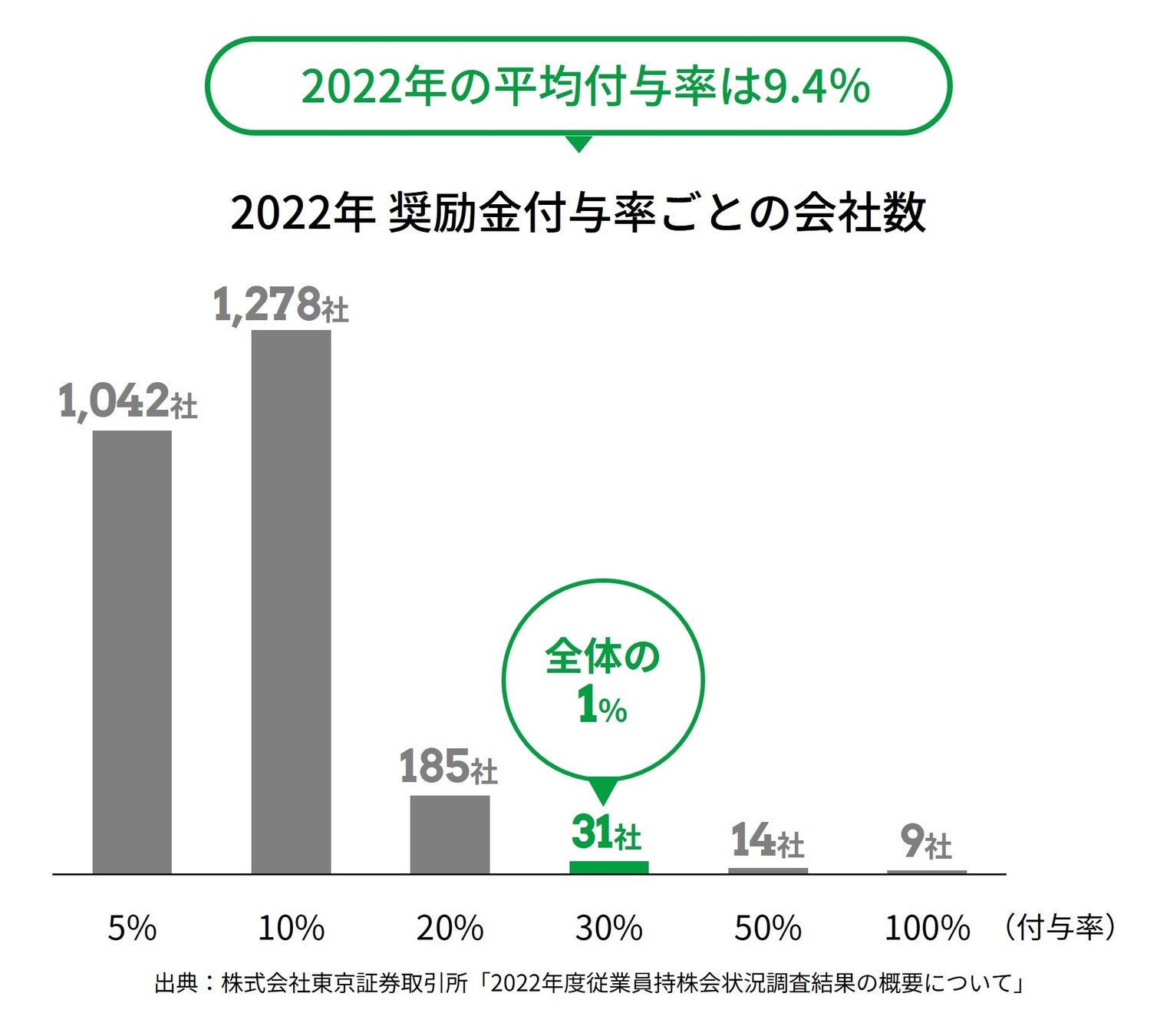 従業員持株会は、従業員の資産形成を支援する制度として多くの上場企業で導入されています。東京証券取引所 の調査によると、従業員持株会奨励金の支給を実施する会社全体の内、付与率30%と定める会社はわずか1%となっています。