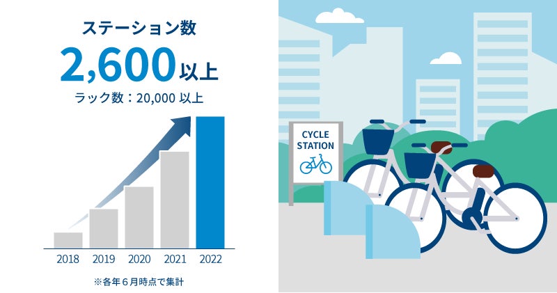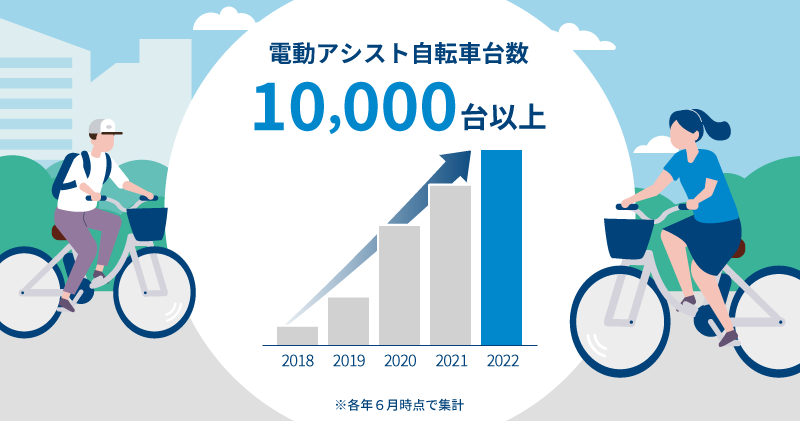- ステーション数は2,600か所以上、電動アシスト自転車台数10,000台以上