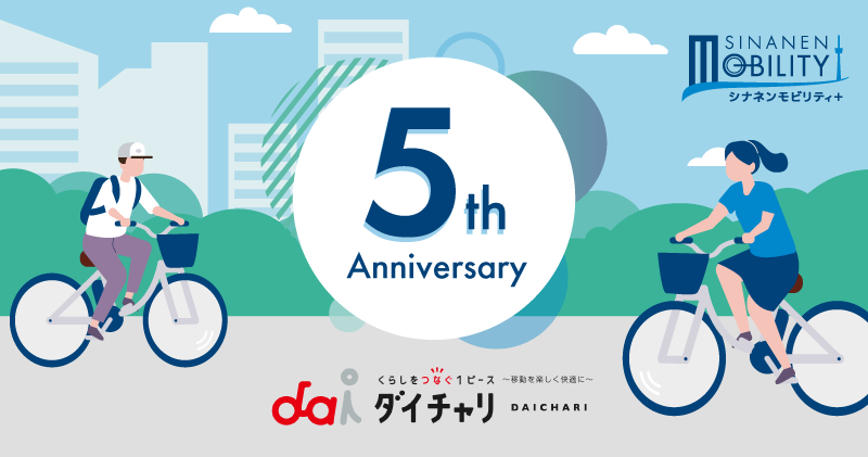 シェアサイクル「ダイチャリ」のサービス開始5周年を記念し総勢555名様にクーポンが当たるキャンペーンを実施
