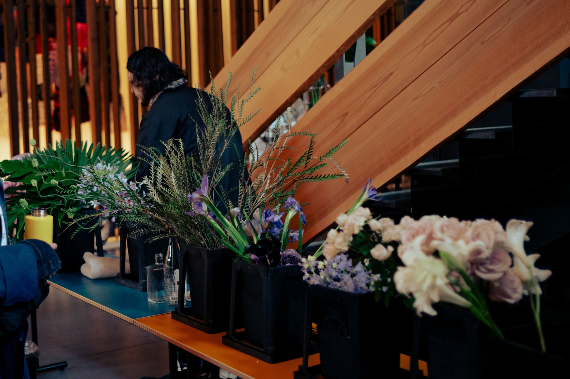 また同日、「Anything but a Vase(花瓶以外の入れ物を持参して)」と題した、廃棄花材をアップサイクルするワークショップも実施いたします。このイベントでは、週末にエースホテル京都で開催される婚礼で花嫁を彩り、会場を華やかに演出していた花々を再活用します。翌日にはまだ美しく咲いていても、通常であれば廃棄されてしまうこれらの花材を、参加者ご自身のお気に入りの容器(花瓶以外でもOK)に活けてお持ち帰りいただきます。シンプルなアップサイクルの体験を通して、私たちが暮らす地球について、楽しみながら考えるきっかけとなるイベントです。