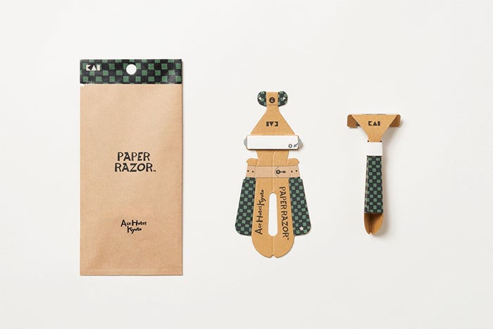 グローバル刃物メーカーの貝印と再びコラボレーションし、昨年も好評だったオリジナル「紙カミソリ®︎」を、エースホテル京都にご宿泊のゲスト限定で数量配布します。紙カミソリ®︎は、持ち手に紙、刃体部分に金属のみを使用した脱プラスチック製品として開発され、サステナブルな日用品として注目を集めています。