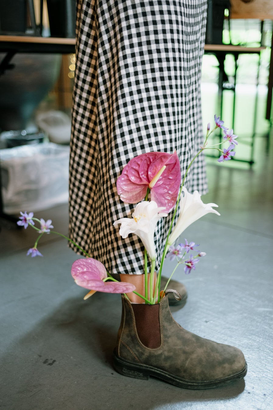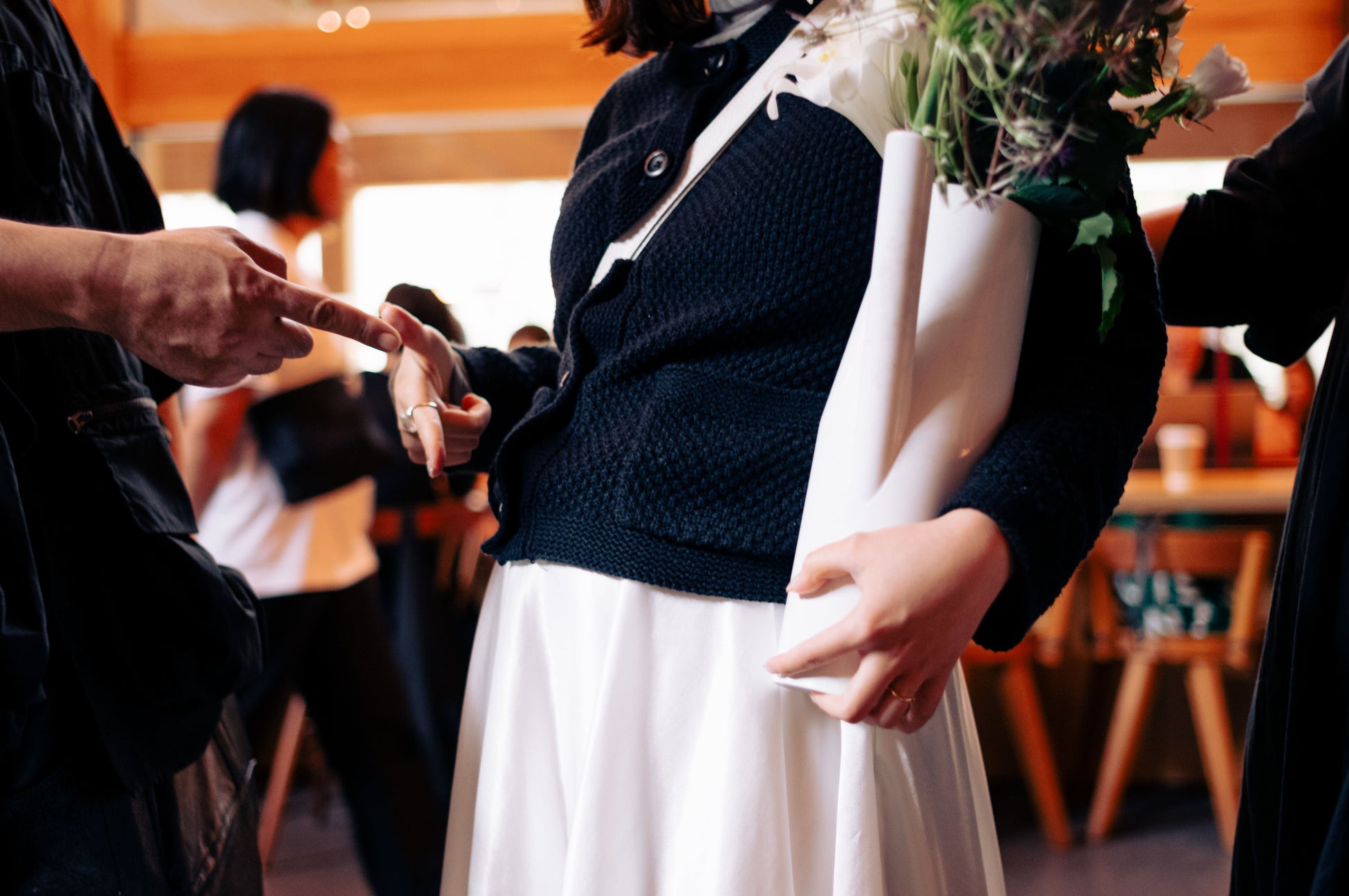 「Anything but a Vase (花瓶以外の入れ物を持参して) 」と名付けたこのイベントでは、週末にエースホテル京都で開催される婚礼で花嫁を彩り、会場を華やかに演出していた花々を再活用します。翌日にはまだ美しく咲いていても、通常であれば廃棄されてしまうこれらの花材を、参加者ご自身のお気に入りの容器(花瓶以外でもOK)に活けてお持ち帰りいただきます。シンプルなアップサイクルの体験を通して、私たちが暮らす地球について、楽しみながら考えるきっかけとなるイベントです。昨年(2024年)に開催したした際は、ファッションの一部としてブーツやズボンのポケットに装飾ししたり、カバンに入れて持ち帰ったり多くの参加した方たちがユニークな方法で持ち帰っていきました。