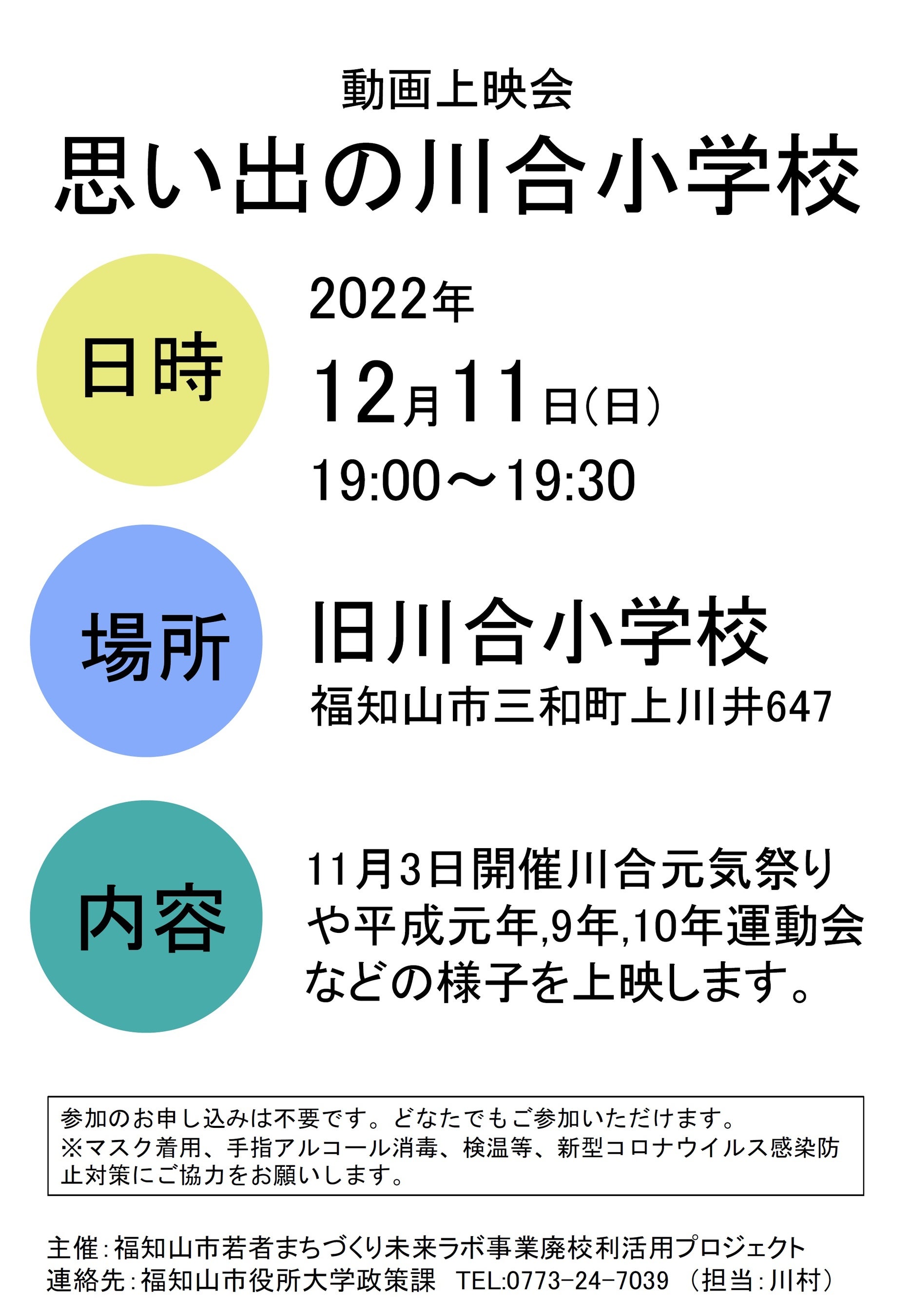 - ②廃校利活用プロジェクト 「動画上映会~思い出の川合小学校~」