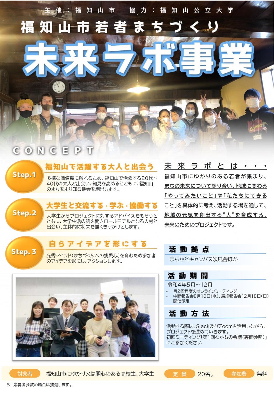 本プロジェクトは、福知山市が主催する、主体的に行動できる「光秀マインド=まちづくりへの挑戦心」を持った人材を育成するための事業「若者まちづくり未来ラボ事業」のプロジェクトです。