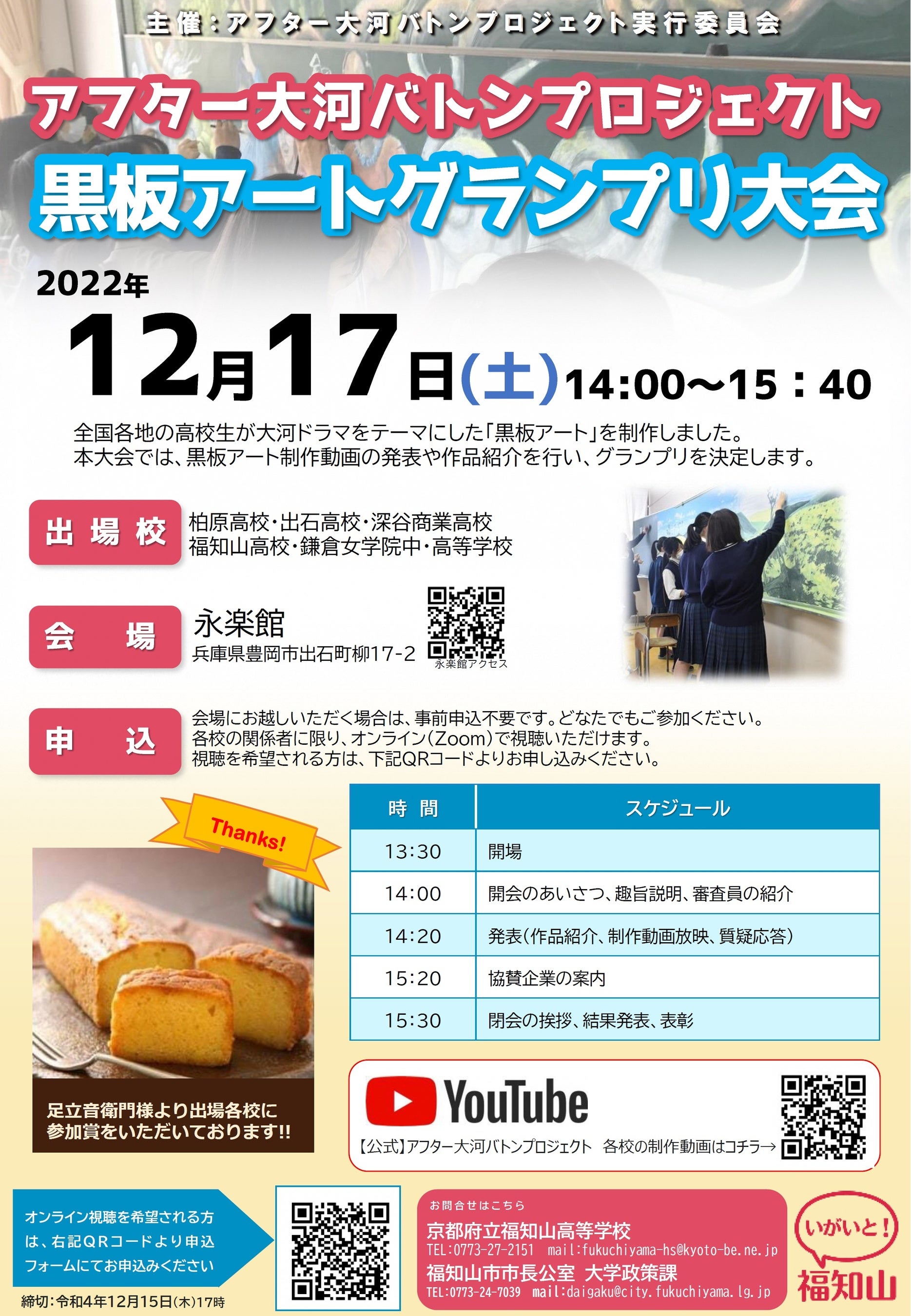 福知山市でまちづくりへの挑戦心“光秀マインド”を育むプロジェクト「アフター大河バトンプロジェクト 黒板アートグランプリ」や「映画版ビブリオバトル」など全4企画を実施しました!