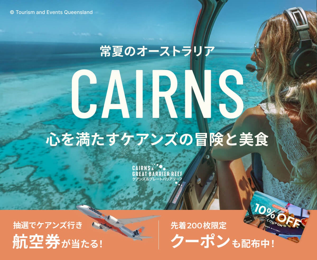 抽選で1組2名様にケアンズ行き往復航空券をプレゼント!