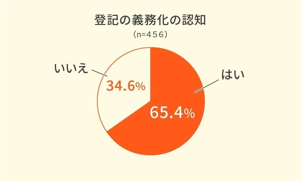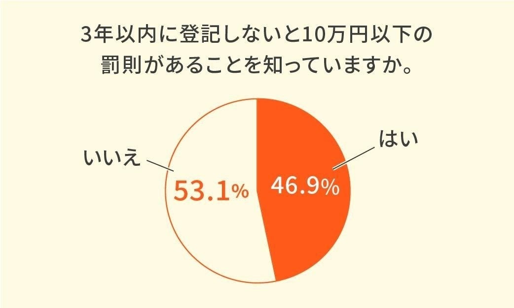 3年以内に正当な理由なく登記をしなかった場合の罰則について認知している回答者は46.9%(214人)と、半数を下回りました。