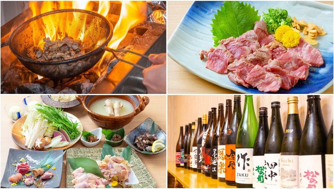 大和肉鶏・金華豚を使用したお鍋と厳選日本酒を堪能。「博多風水炊鍋」は大和肉鶏を長時間煮込んで出汁をとり、軽く炭火で炙った大和肉鶏をスープと共にご提供。「金華豚の出汁しゃぶ鍋」は幻の豚と呼ばれる「金華豚」をたっぷりと使用。大阪松原産の油カスを入れたコクのある甘めの出汁でお召し上がりください。
