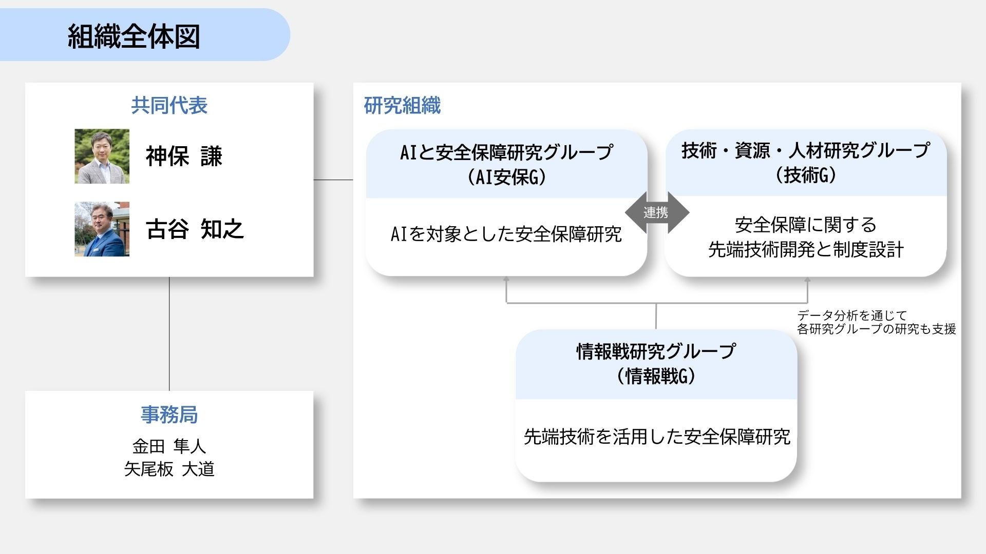 これらの研究グループの知見を統合し、先端技術時代の安全保障戦略に関する政策提言や社会発信を行います。