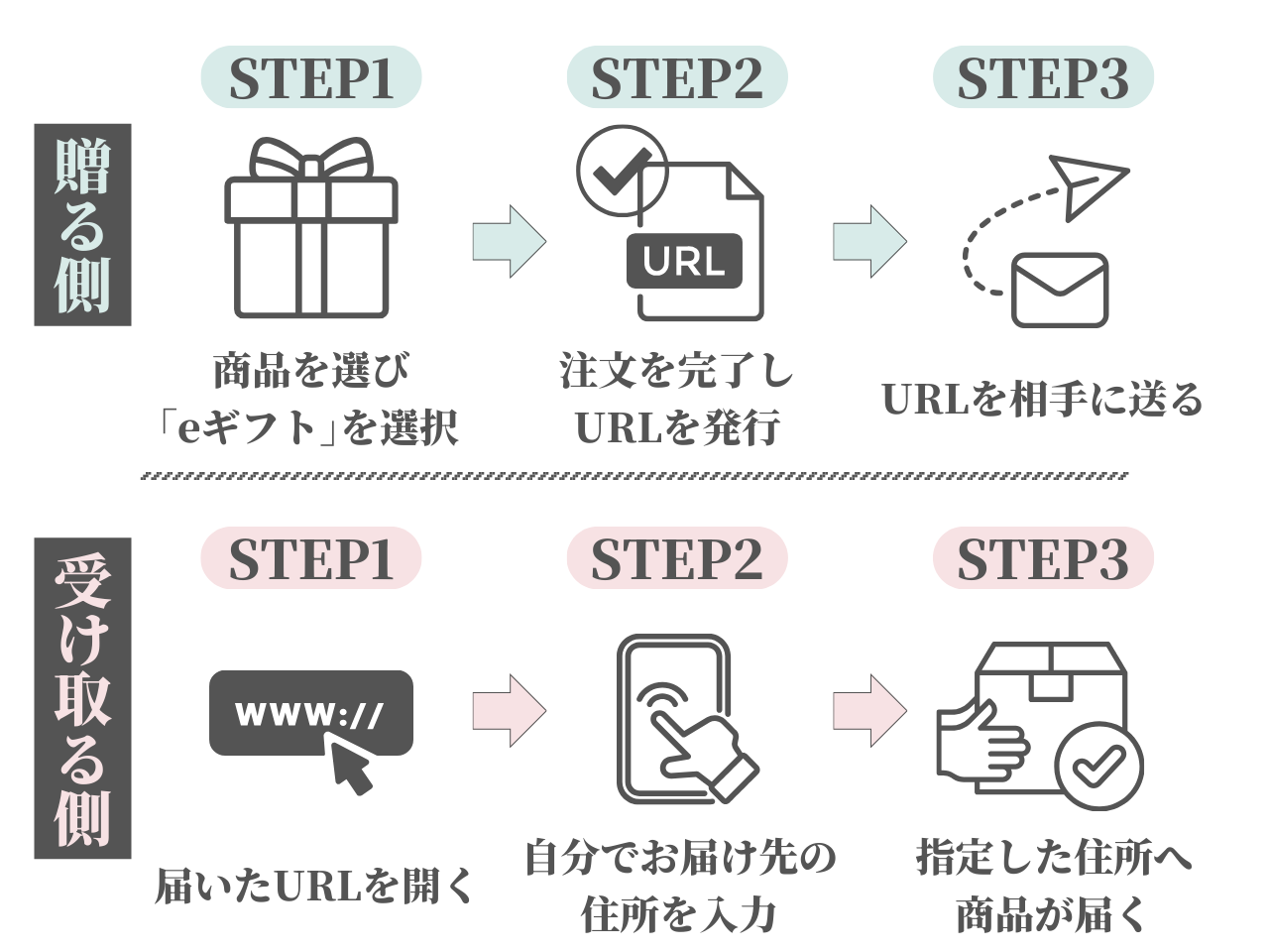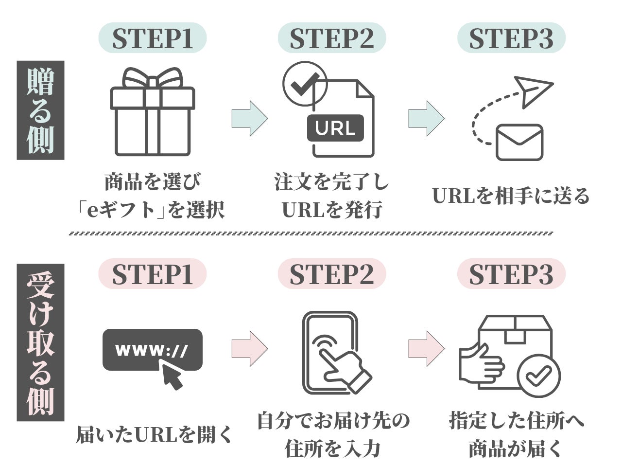 送り主・受け取る方の住所は相互に非公開。URLリンクを送るだけだから、LINEやInstagram、メール等、どんなツールでも贈れます。