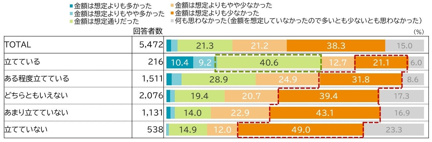 ライフプランを立てている人は、公的年金額の多寡を「想定通り」と認識する傾向