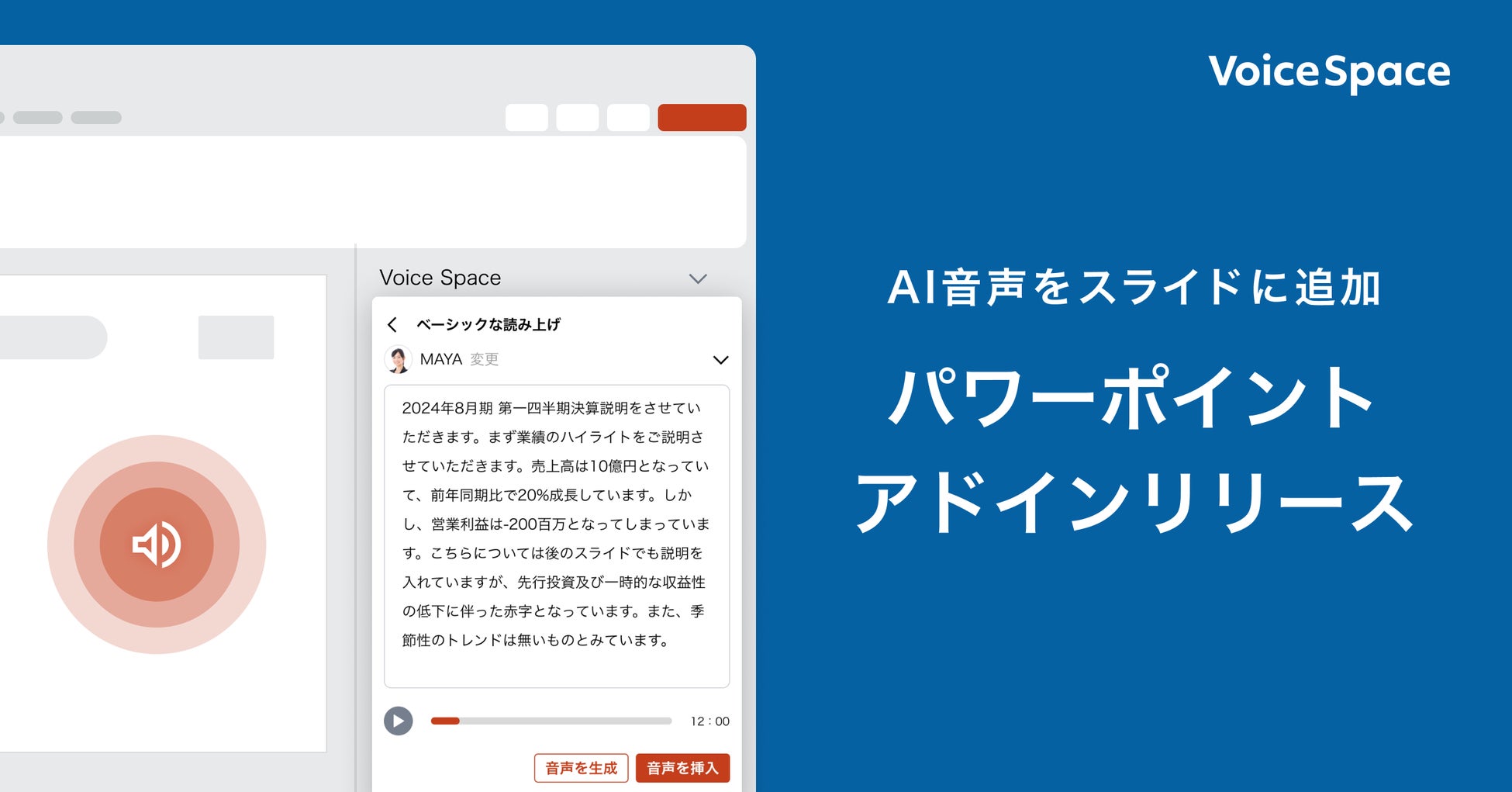 総合音声AIサービスVoice Spaceの新機能として、Microsoft PowerPointのアドイン機能をリリースしました。