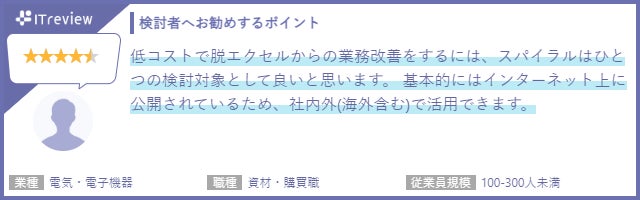 「SPIRAL ver.1」に対するITreviewユーザー評価 ※一部抜粋