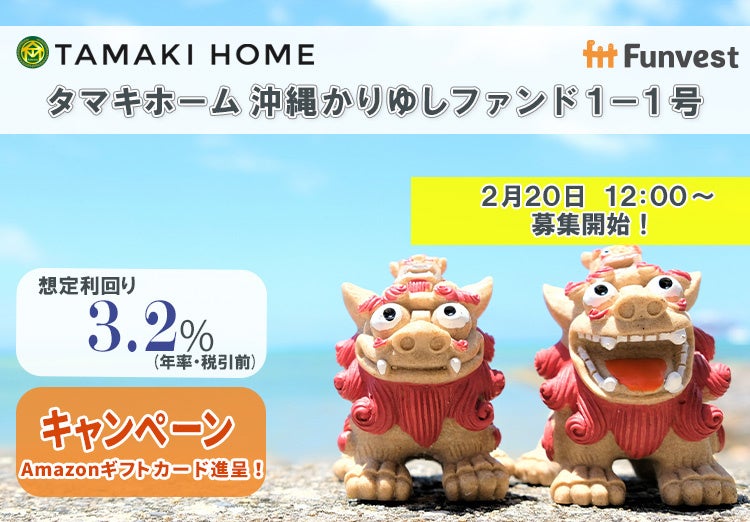 「未来をわかちあう投資」を提供する「Funvest(ファンベスト)」(以下、Funvest)は、「タマキホーム 沖縄かりゆしファンド1-1号」(以下、本ファンド)の募集を2/20より開始しますので、お知らせいたします。