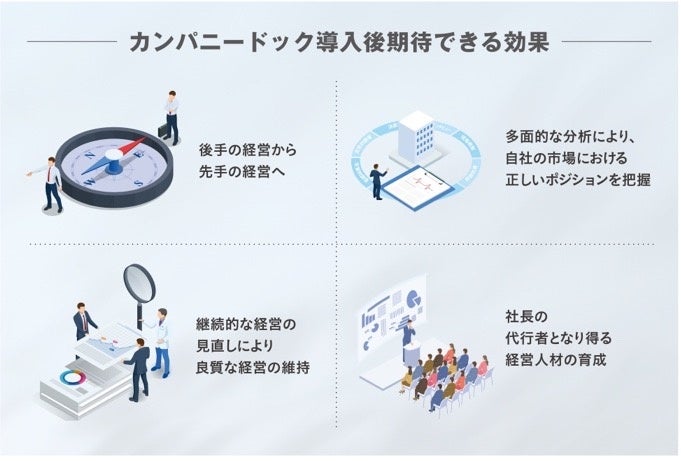 - 経営状態を見える化し、組織の永続的成長を実現する 人間ドックの企業版「COMPANY DOCK」