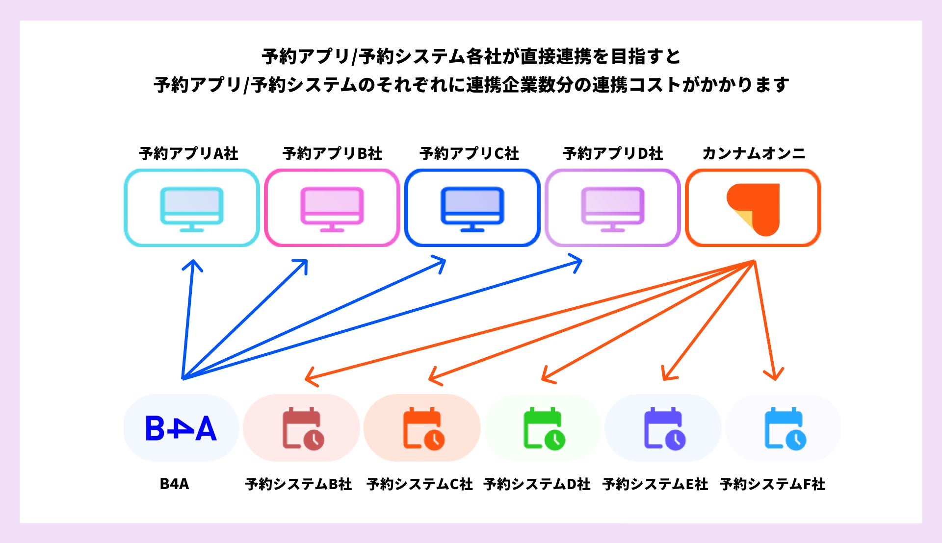 予約アプリや予約システムは複数社存在しているため、各社が個別に連携しようとすると膨大な工数がかかってしまいます。