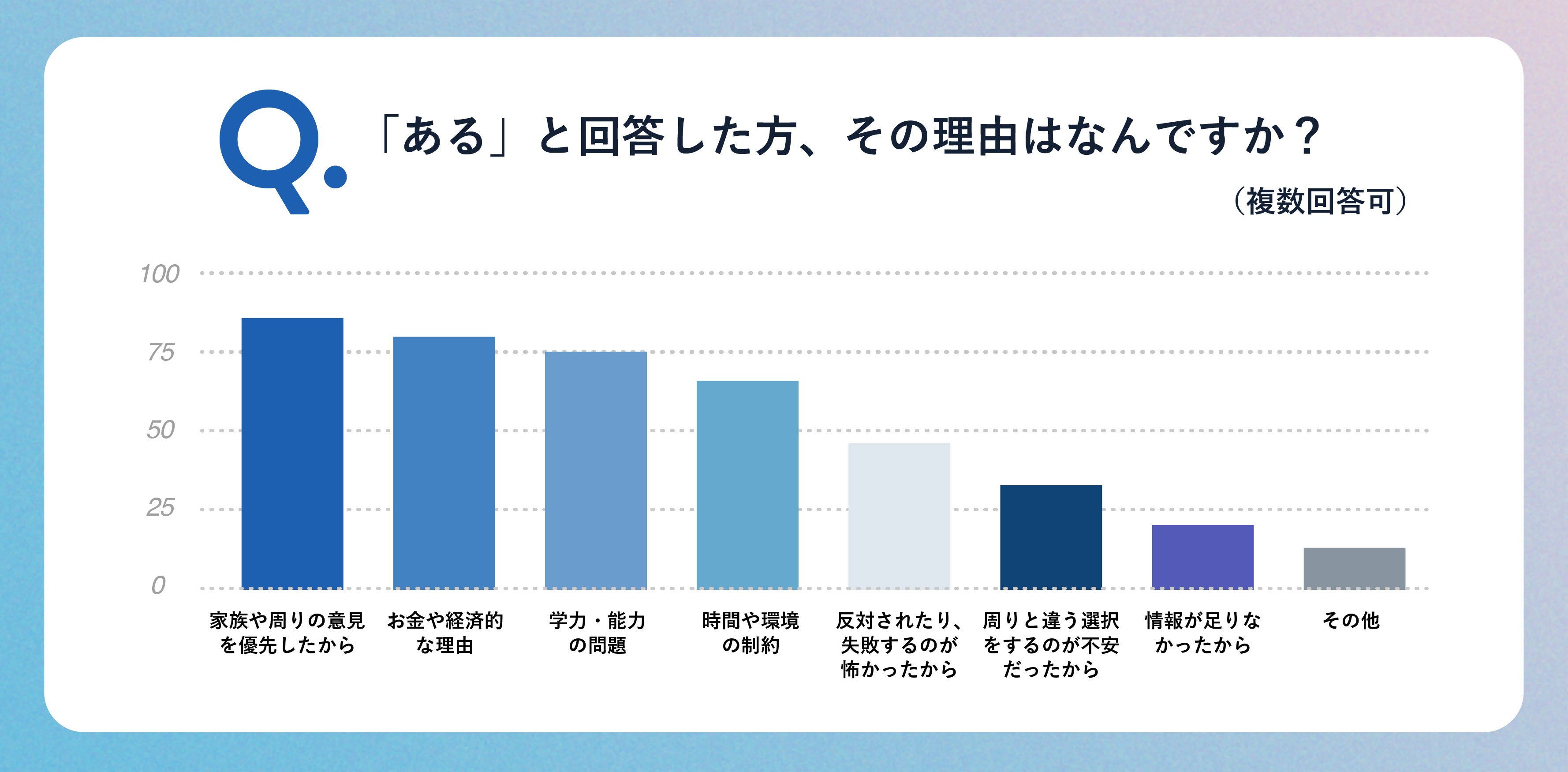 その理由として最も多かったのは、経済的な事情でした。他にも、周囲からの反対や失敗を恐れて、選択をあきらめるという声も多くみられました。