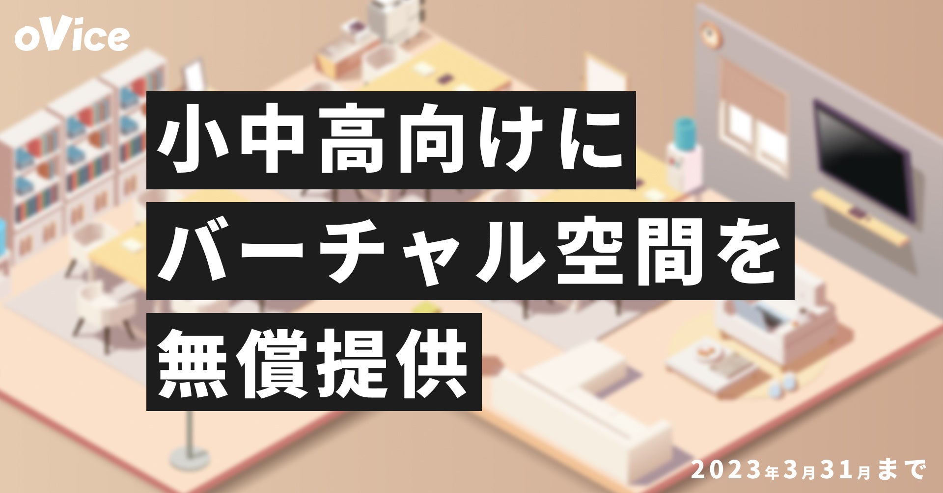 oVice株式会社(本社:石川県七尾市、代表取締役:ジョン・セーヒョン)は、アバターで交流する2次元のバーチャル空間「oVice(オヴィス)」を、全国の公立・私立の小学校、中学校、高校(高専含む)向けに無償で提供します。提供期間は約1年後の2023年3月31日までを予定。オンラインでの自由なコミュニケーションの場であるバーチャル空間を通じ、コロナ禍における子どもたちの孤独感解消に貢献します。