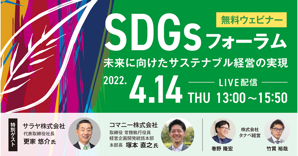 サステナブル経営を牽引するゲスト2社が自社での取り組みをご講演。SDGsの本質を学び環境・社会・経済の3点からビジネスモデルをアップデート!「SDGsフォーラム~未来に向けたサステナブル経営の実現~」