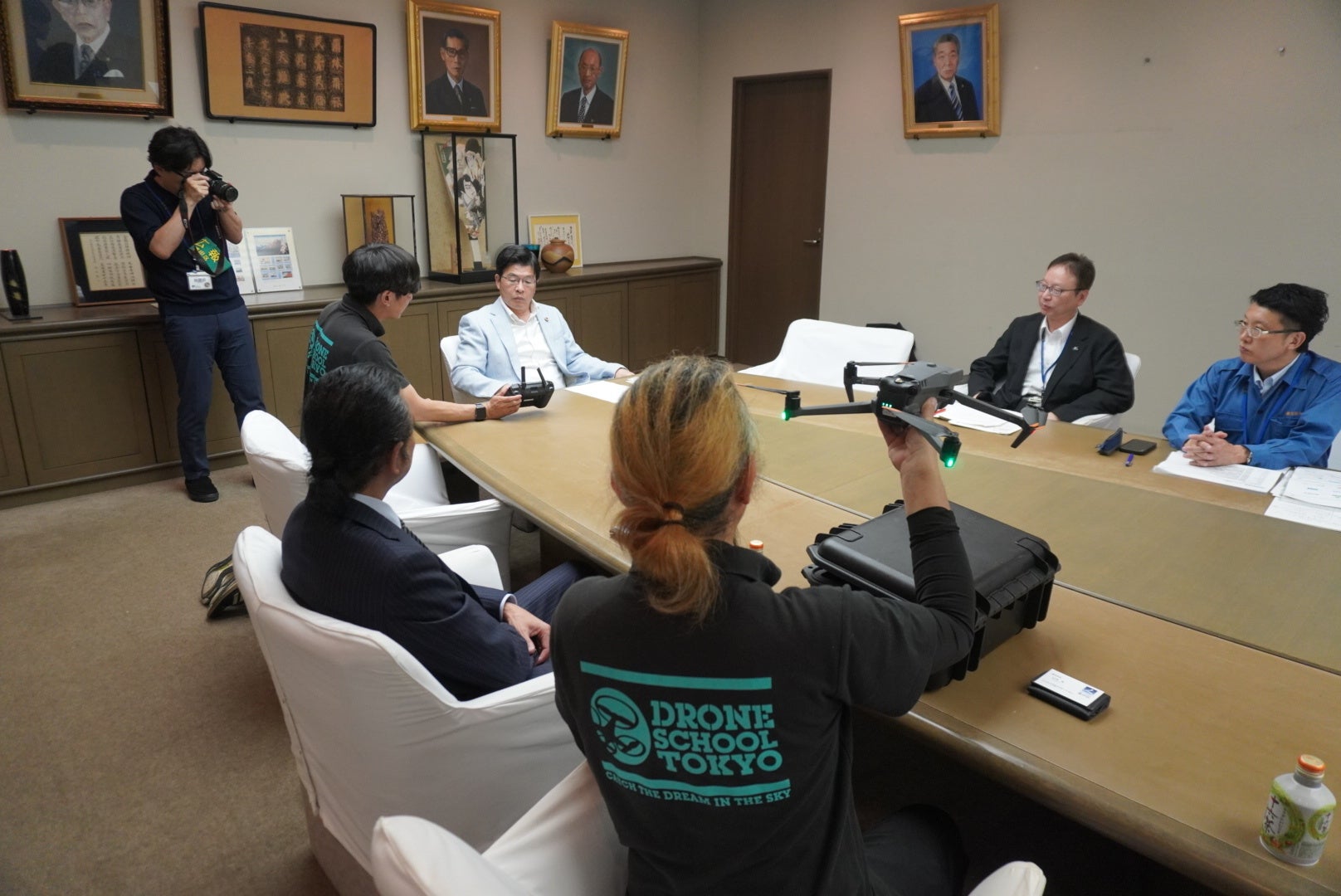 山本区長にドローンのカメラ性能などを含めた機能を紹介させていただきました。
